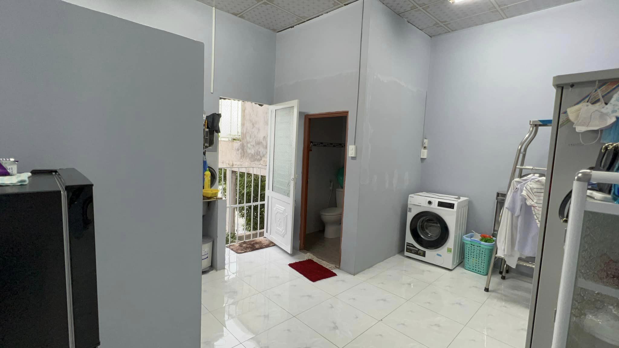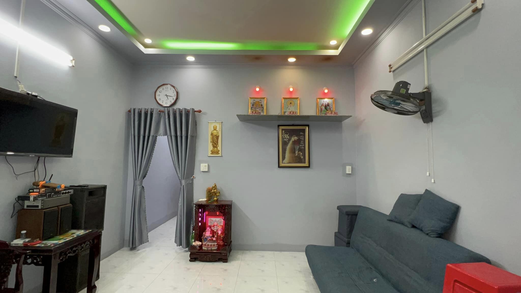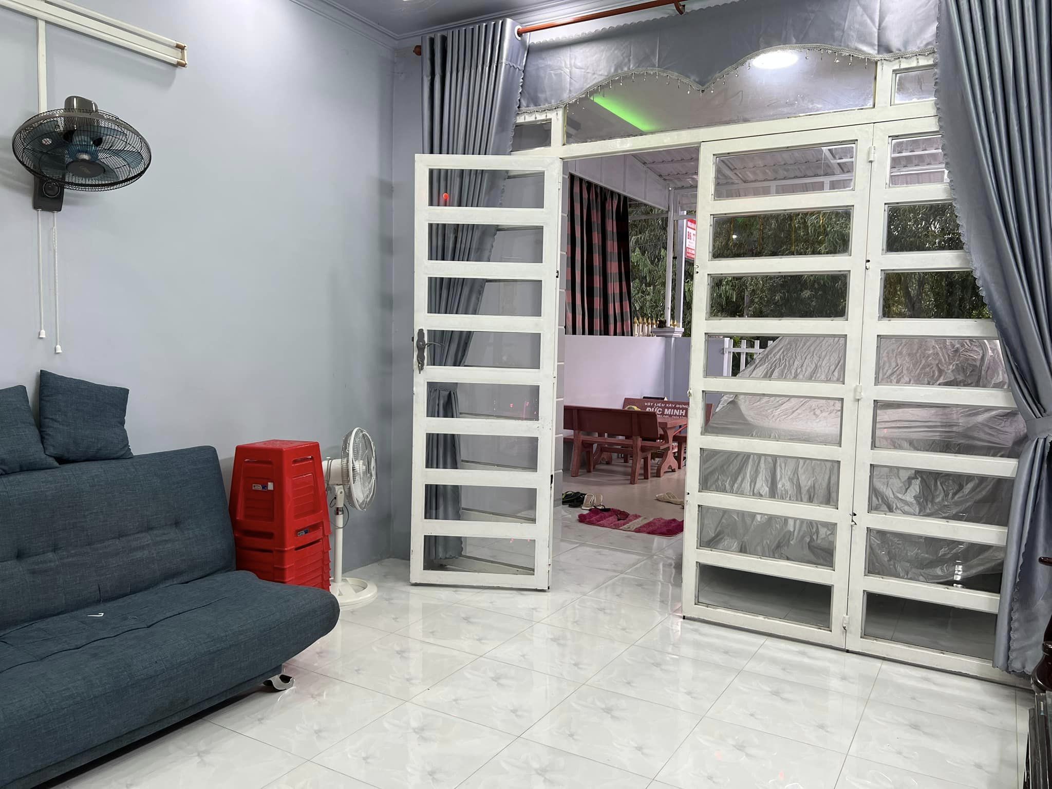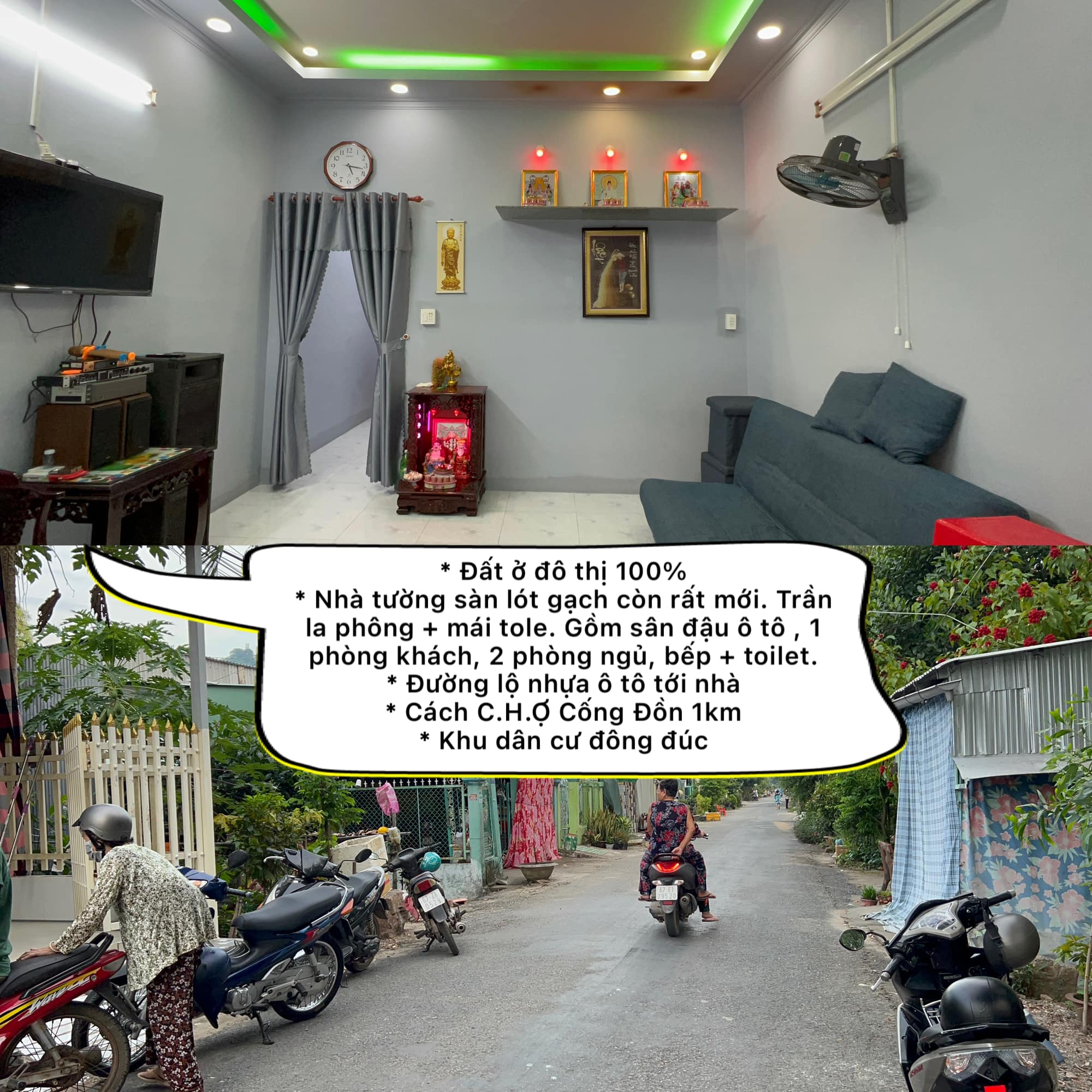 * Nhà tường sàn lót gạch còn rất mới. Trần la phông + mái tole. Gồm sân đậu ô tô , 1 phòng khách, 2 phòng ngủ, bếp + toilet.