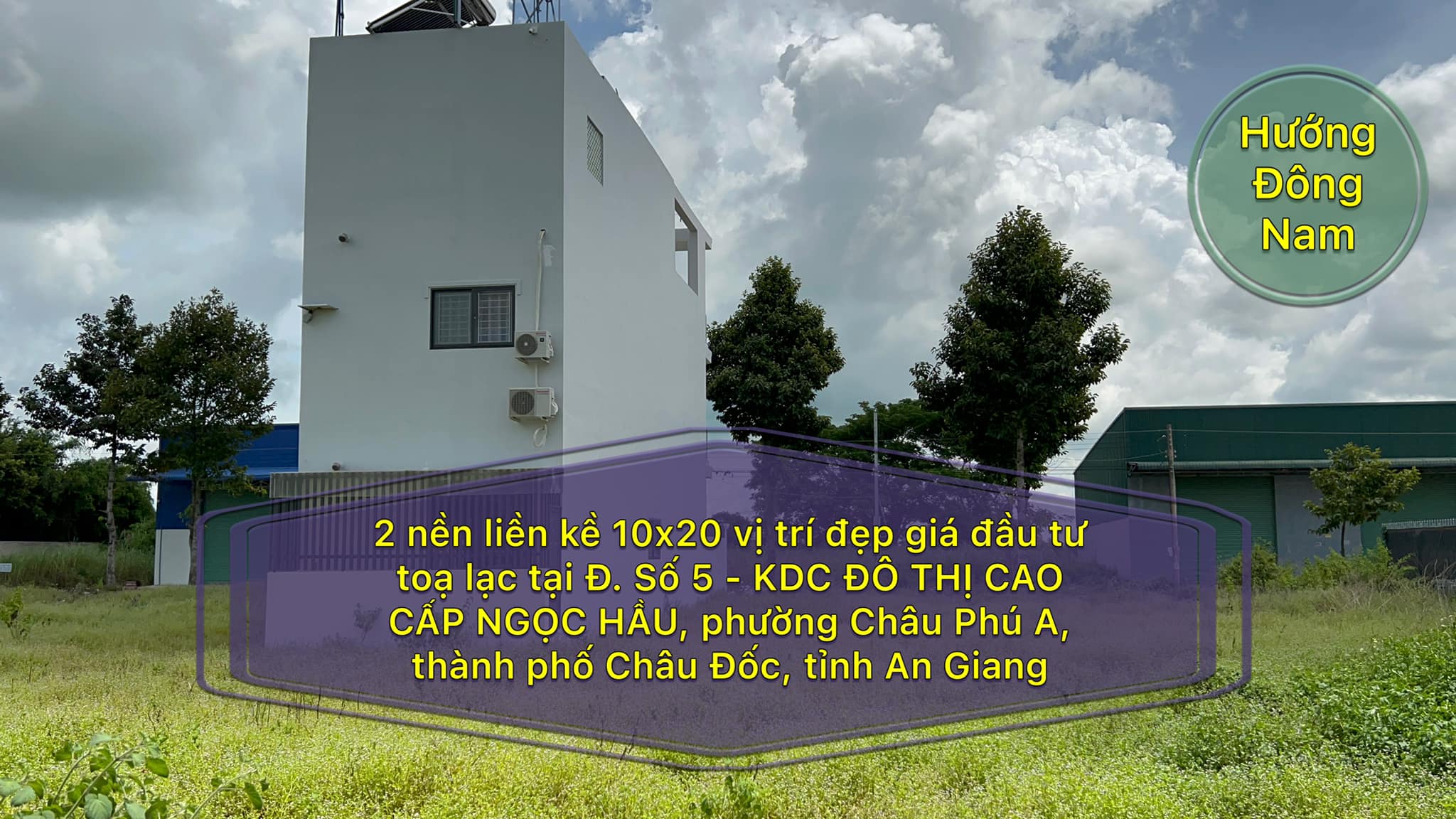 Chỉ còn 2 nền liền kề 10×20 vị trí đẹp giá đầu tư toạ lạc tại Đ. Số 5 – KDC ĐÔ THỊ CAO CẤP NGỌC HẦU, phường Châu Phú A, thành phố Châu Đốc, tỉnh An Giang.