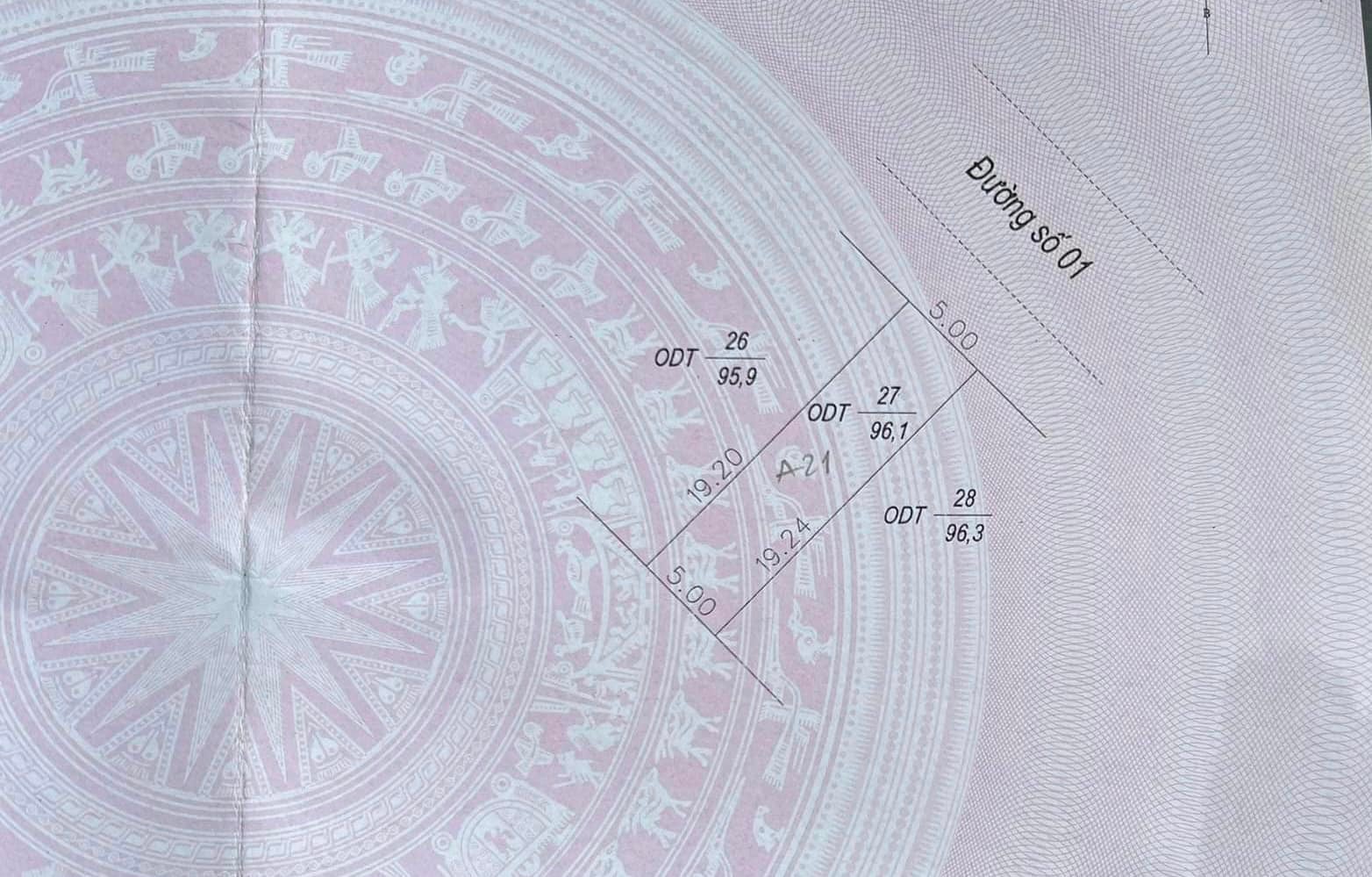 – Diện tích đất Ngang 5m x dài 19,20 = 96,1m2