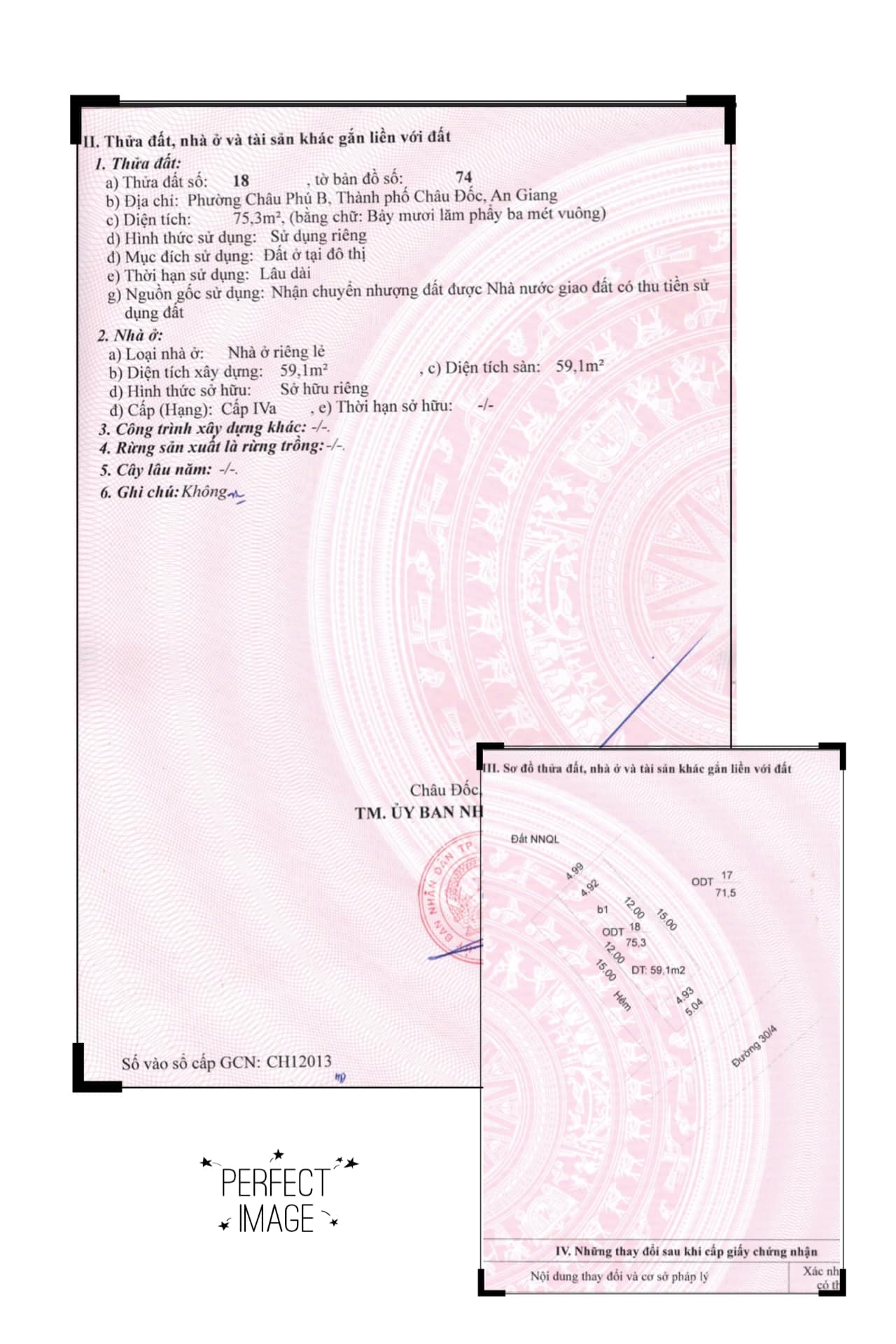 – Diện tích sàn nhà 59,1m2 ( nhà đã hợp thức hoá hoàn công sổ nhà)