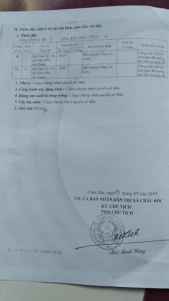 Cần bán 38 công đất mặt tiền kênh 7, xã Vĩnh Tế, thành phố Châu Đốc, tỉnh An Giang. Đường xe tăng tới đất & cập mương nước lớn. Mặt tiền ngang 263m (hậu 257m) dài cạnh trái 178m & cạnh phải 120m. Giá 300.000/m2 x 37.637m2 = 11 tỷ 291 triệu còn thương lượng trực tiếp chính chủ không qua trung gian. Liên hệ 0942.304.944 hoặc 0989.991.394 gặp em Thọ ạ! Cụ thể như sau:
