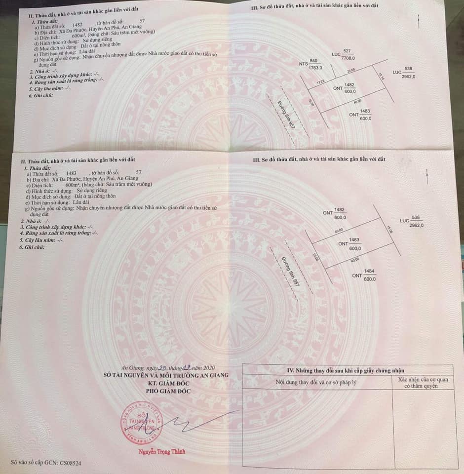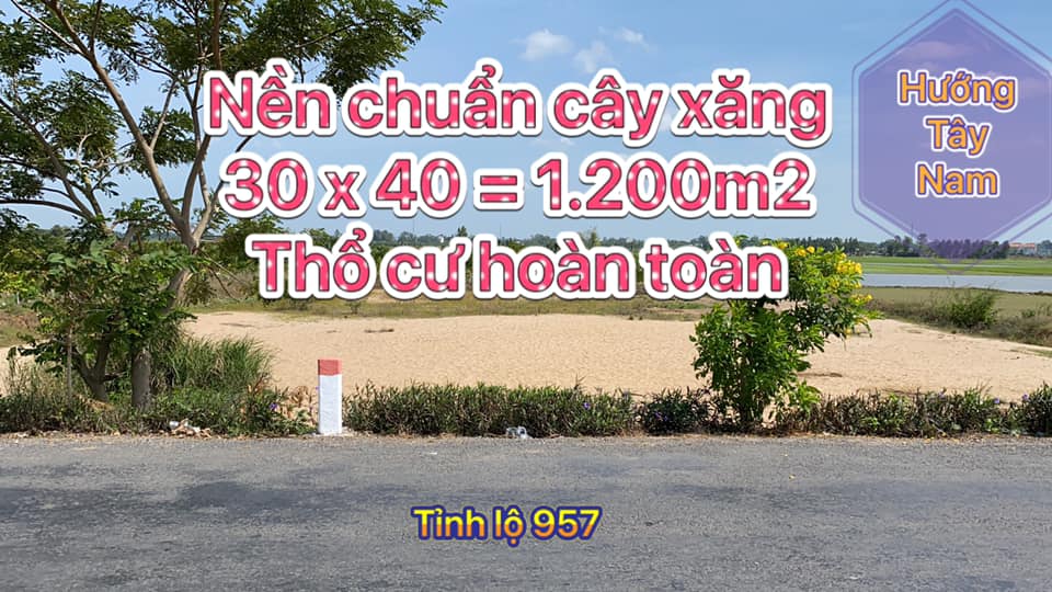 Cần bán nền chuẩn cây xăng mặt tiền Tỉnh Lộ 957, huyện An Phú, tỉnh An Giang. Ngang 30m x dài 40m (thực tế 48m) = 1.200m2 (Mua ngang 45m vẫn có nhé).