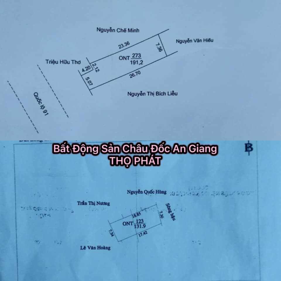 Cần bán nền vị trí đẹp giá đầu tư thích hợp kinh doanh, tiền cận lộ hậu cận giang ngay chợ & cầu vịnh tre QL 91 xã Vĩnh Thạnh Trung, huyện Châu Phú, tỉnh An Giang. Ngang 5,07m ( nở hậu 7,30m) dài cạnh phải 44,12m & cạnh trái 46,m = 323,1m2. Giá 3 tỷ còn thương lượng trực tiếp chính chủ không qua trung gian. Liên hệ 0942.304.944 hoặc 0989.991.394 gặp em Thọ ạ! Cụ thể như sau:
