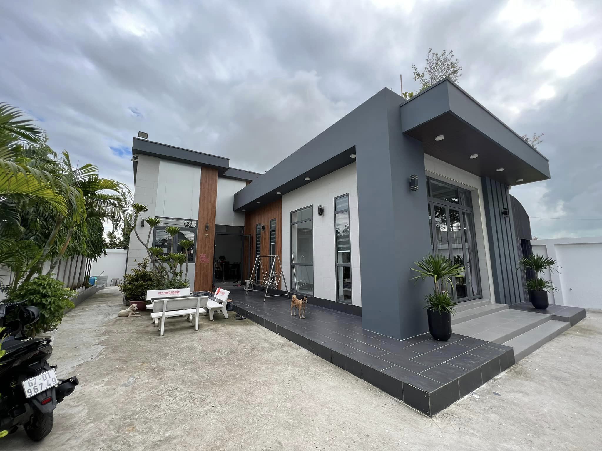 – Nhà thiết kế hiện đại gồm sân đậu ô tô, phòng khách, 2 phòng ngủ, toilet, bếp, nhà nghỉ mát taluy phía sau 7×15. Sân thượng móng dự trù lên thêm lầu nếu cần.