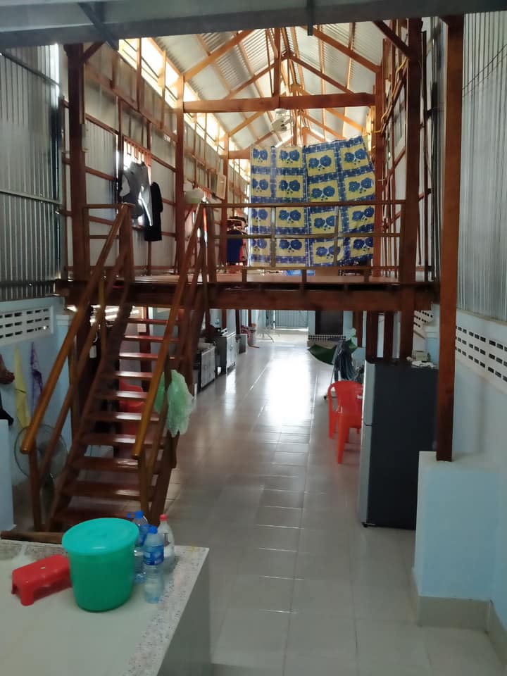 2. Nhà sau có gác gỗ, sàn lót gạch, vách tole, mái tole có 2 nhà vệ sinh.