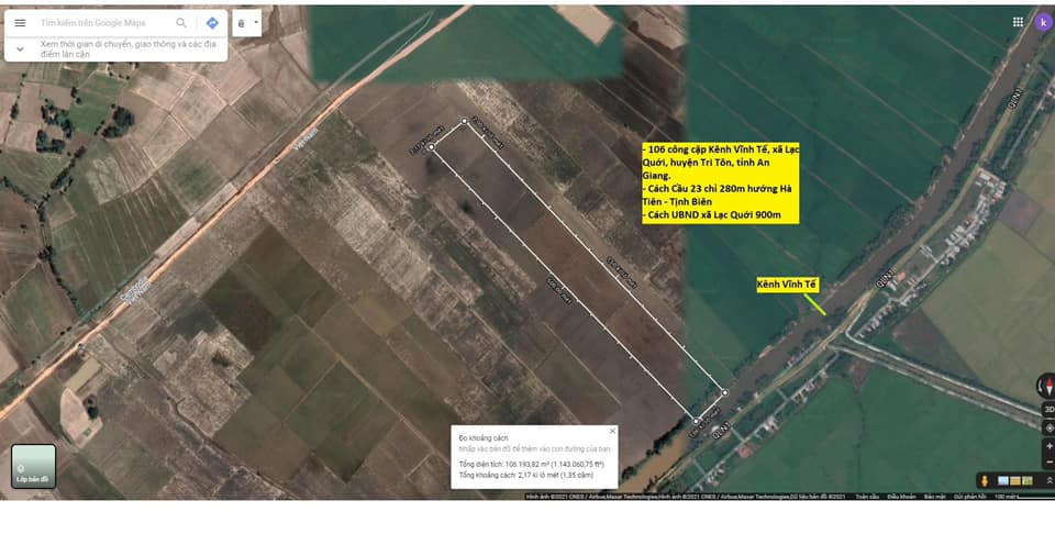 Cần bán 106 công đất cập Kênh Vĩnh Tế, xã Lạc Quới, huyện Tri Tôn, tỉnh An Giang. Du thuyền tới đất.