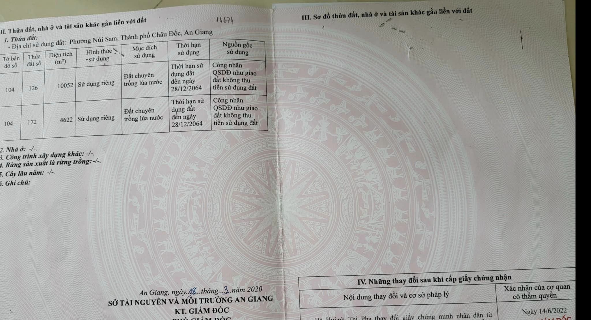 Cần bán 14 công đất lúa trực thuộc phường Núi Sam, thành phố Châu Đốc, tỉnh An Giang. Cập Rạch Ông Xã Kênh 7