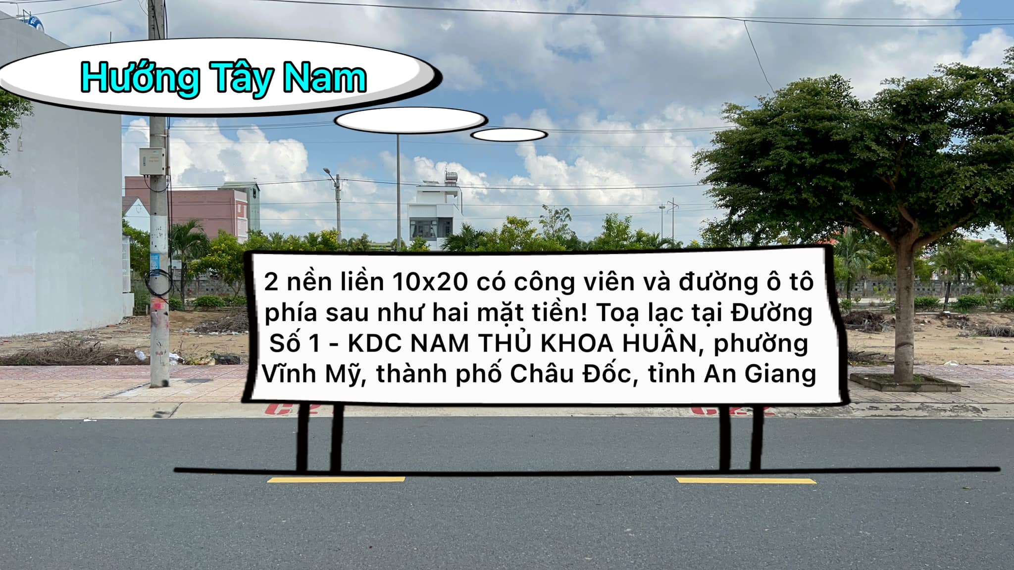 Cần bán 2 nền liền 10×20 có công viên và đường ô tô phía sau như hai mặt tiền! Toạ lạc tại Đường Số 1 – KDC NAM THỦ KHOA HUÂN, phường Vĩnh Mỹ, thành phố Châu Đốc, tỉnh An Giang.