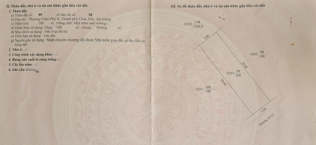 – Đất ở đô thị 100 %
