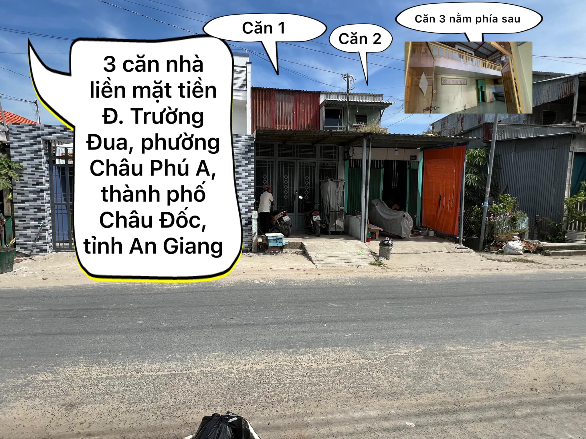 Cần bán 3 căn nhà liền mặt tiền Đ. Trường Đua, phường Châu Phú A, thành phố Châu Đốc, tỉnh An Giang