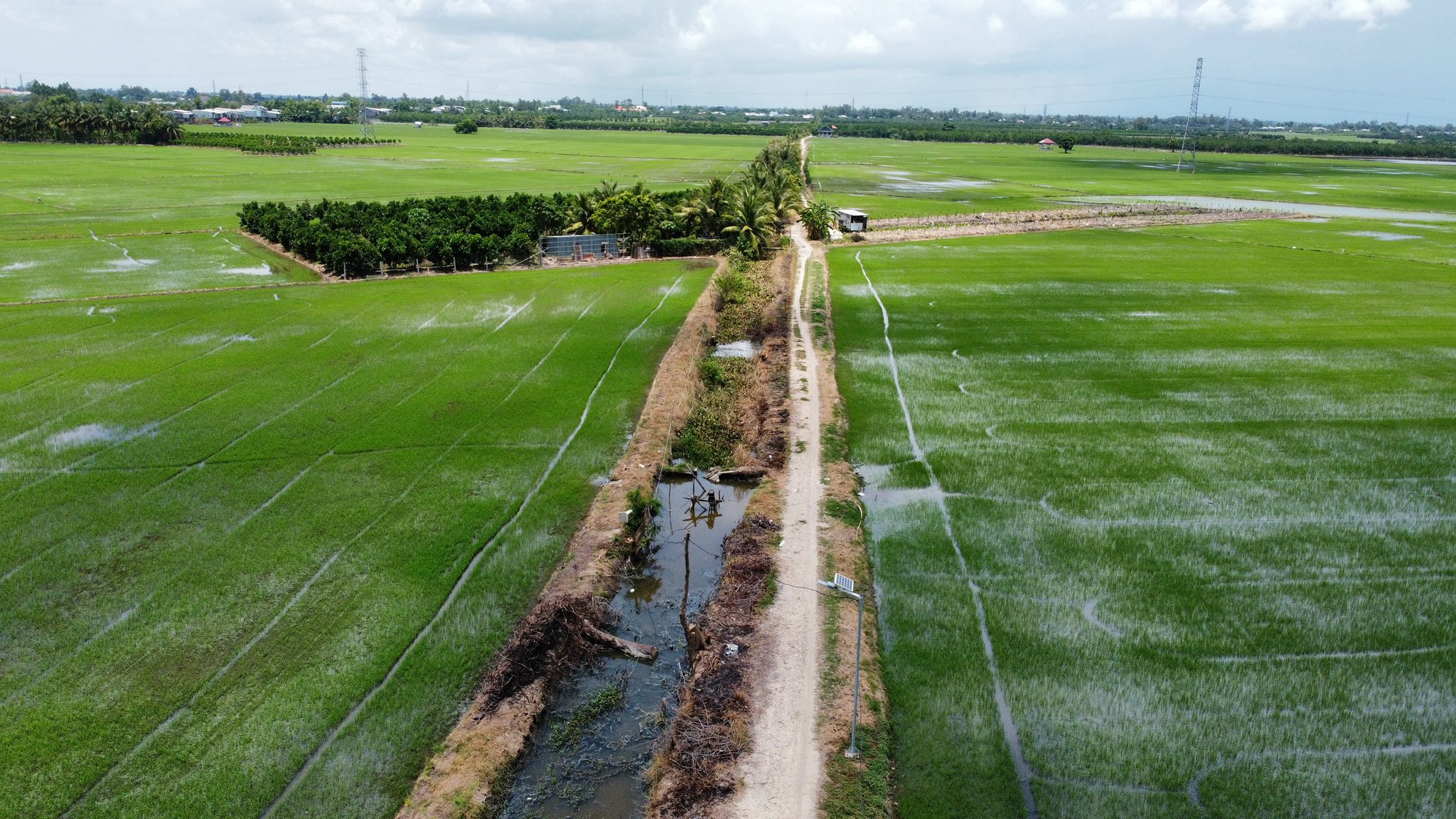 2. Một bên cập mương nước gồm 2 Thửa liền diện tích 5.000m2 + 5.995m2 = 10.995 m². Mặt tiền ngang đất siêu lớn tới 166m
