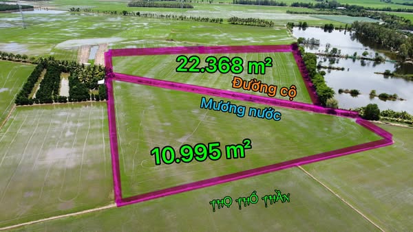 2. Một bên cập mương nước gồm 2 Thửa liền diện tích 5.000m2 + 5.995m2 = 10.995 m². Mặt tiền ngang đất siêu lớn tới 166m