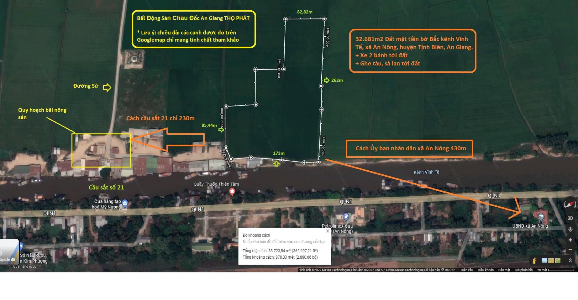 – Đất nằm cách UBND xã An Nông 430m