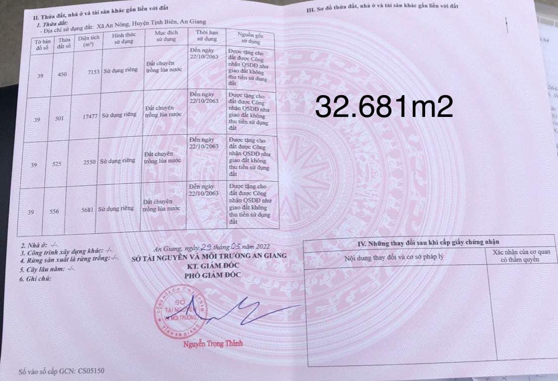 – Giá 100 triệu / 1000m2 = 3 tỷ 268 triệu ( giá đã giảm )