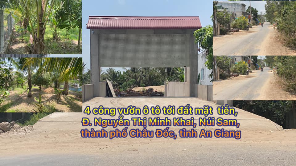 Cần bán 4 công vườn mặt tiền Đ. Nguyễn Thị Minh Khai, phường Núi Sam, thành phố Châu Đốc, tỉnh An Giang, cách Đ. 955A khoảng 100m. Ô tô tới đất & Đối diện kênh nước lớn (kênh 4).