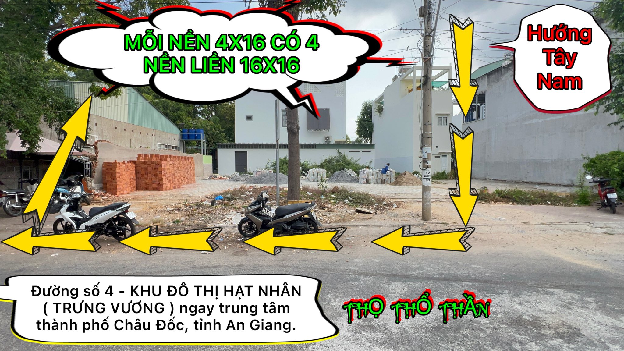 Cần bán 4 nền liền 16×16 mặt tiền Đường số 4 – KHU ĐÔ THỊ HẠT NHÂN ( TRƯNG VƯƠNG ) ngay trung tâm thành phố Châu Đốc, tỉnh An Giang.