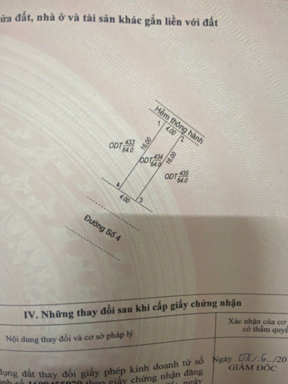 – Diện tích mỗi nền ngang 4m x dài 16m = 64m2 Đất ở đô thị (có sẵm hẻm thông hành phía sau). Sổ riêng từng nền.