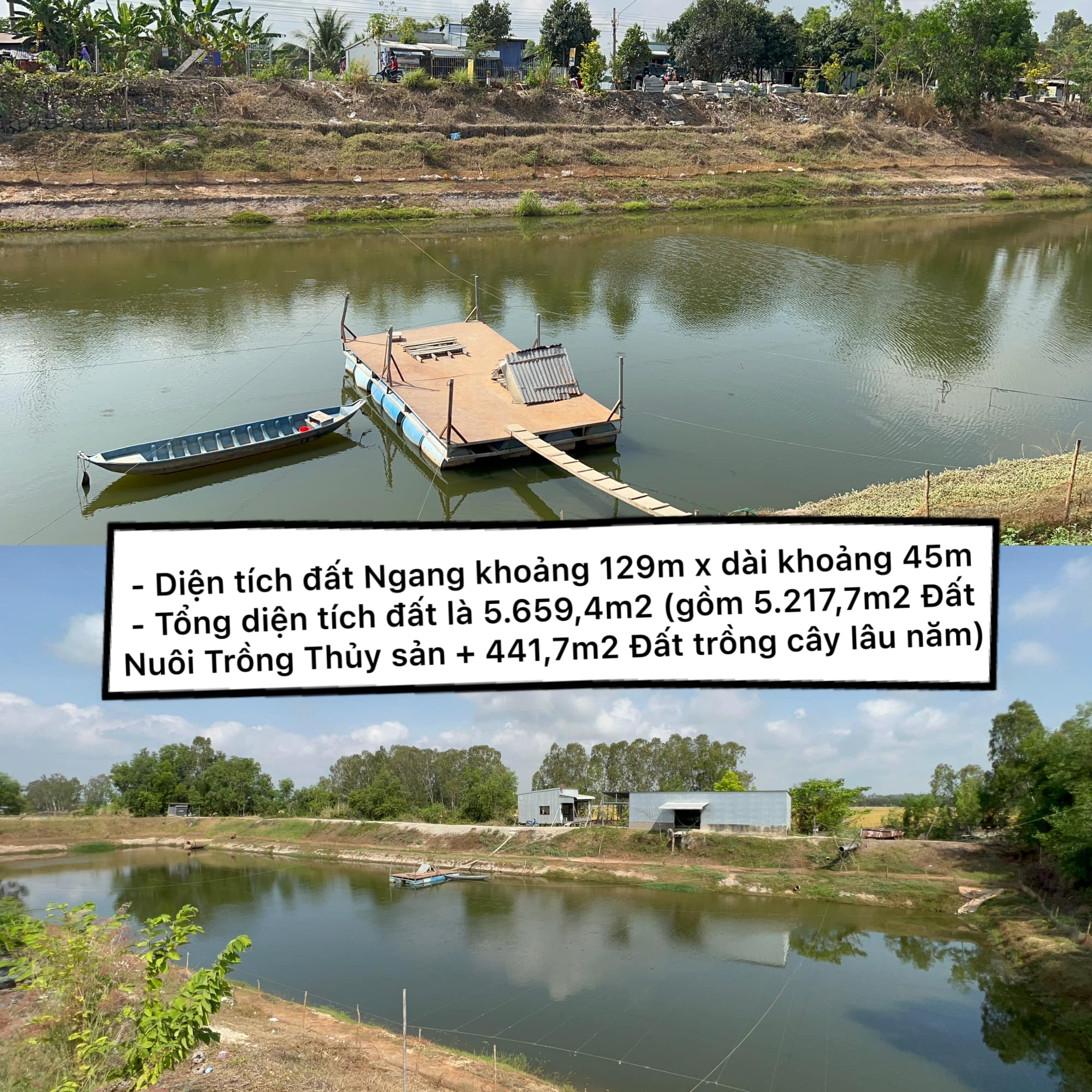 – Tổng diện tích đất là 5.659,4m2 (gồm 5.217,7m2 Đất Nuôi Trồng Thủy sản + 441,7m2 Đất trồng cây lâu năm)