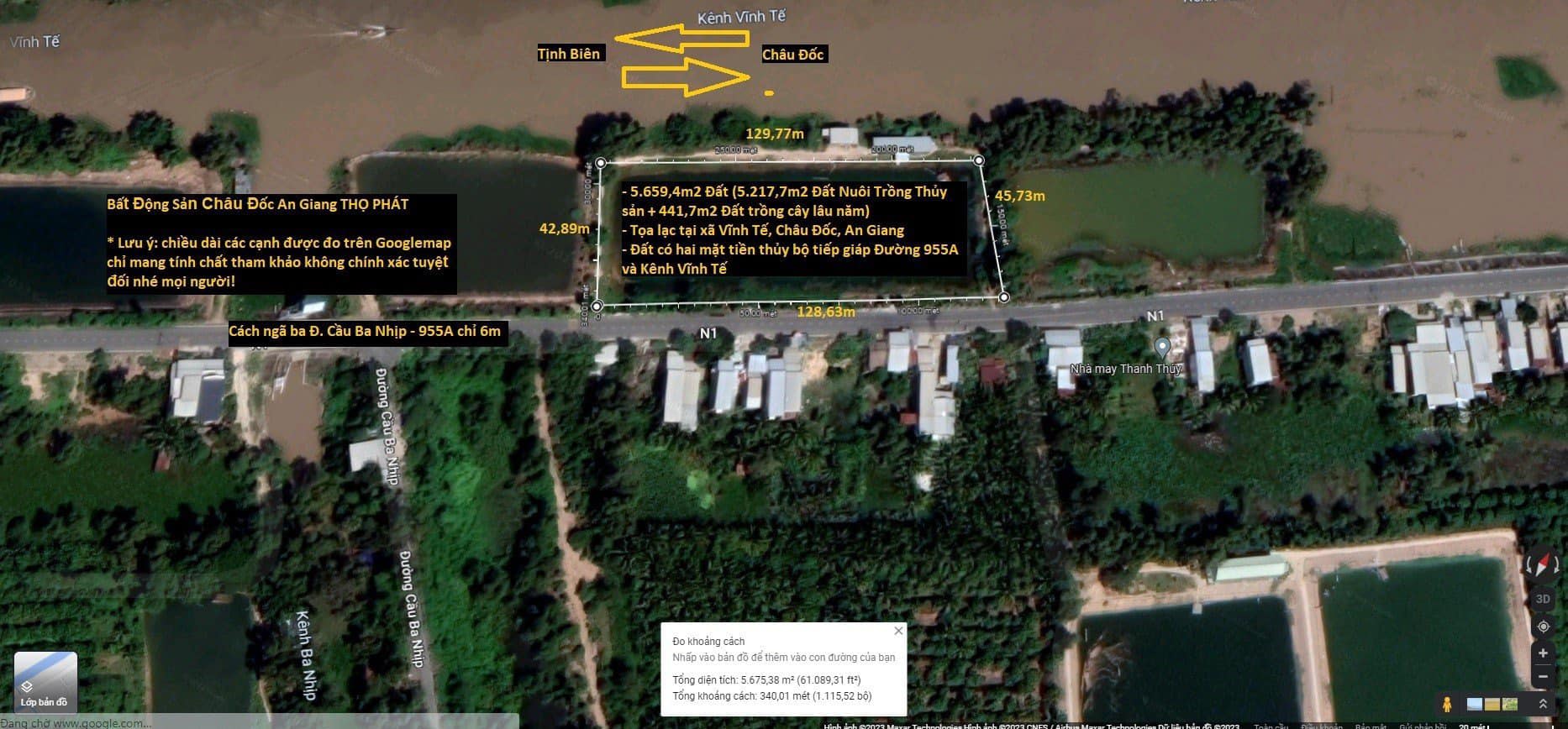 Cần bán 5 công 6 đất nuôi trồng thuỷ sản có hai mặt tiền thuỷ bộ Đ. Tỉnh lộ 955A, xã Vĩnh Tế, thành phố Châu Đốc, tỉnh An Giang.