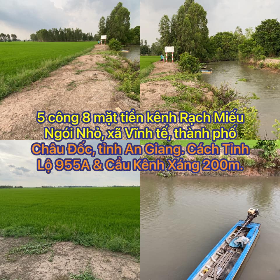 Cần bán 5 công 8 mặt tiền kênh Rạch Miếu Ngói Nhỏ, xã Vĩnh Tế, thành phố Châu Đốc, tỉnh An Giang. Cách Tỉnh Lộ 955A & Cầu Kênh Xáng 200m.