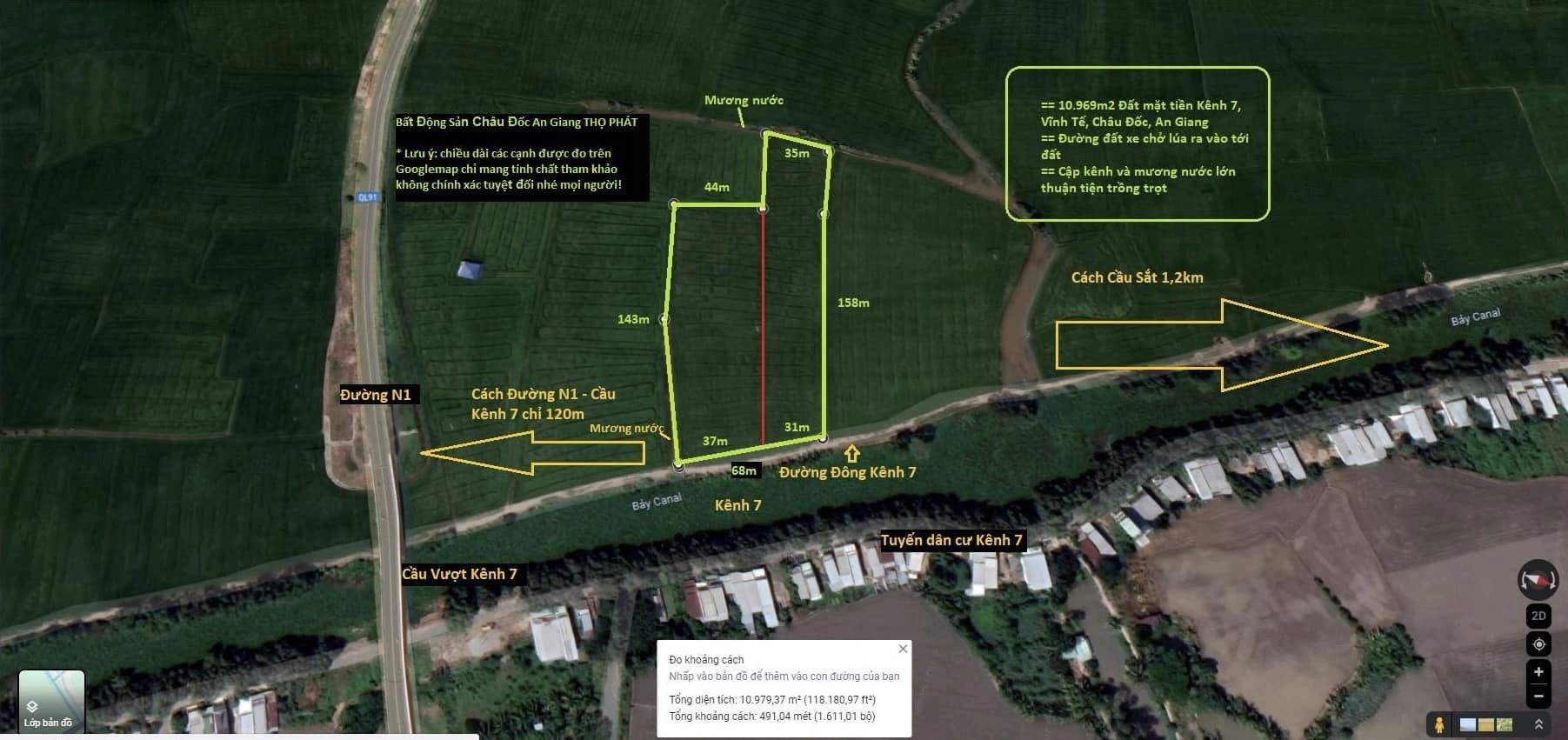 Cần bán 5 công đất mặt tiền Kênh 7, xã Vĩnh Tế, thành phố Châu Đốc, tỉnh An Giang. Đường đất rộng xe chở lúa tới đất