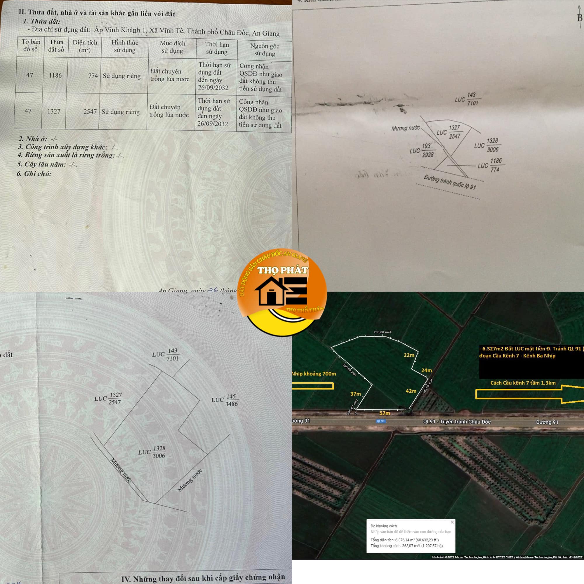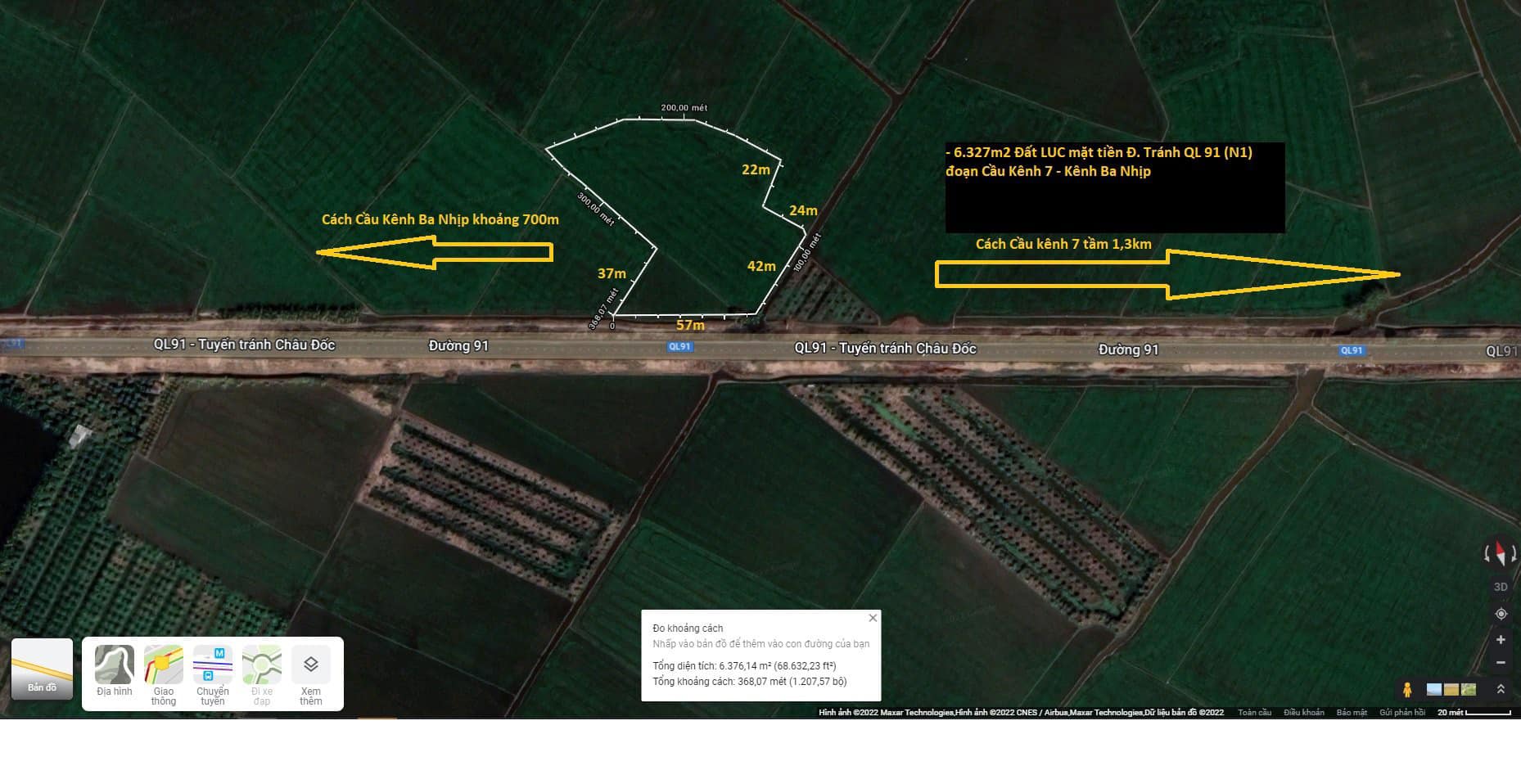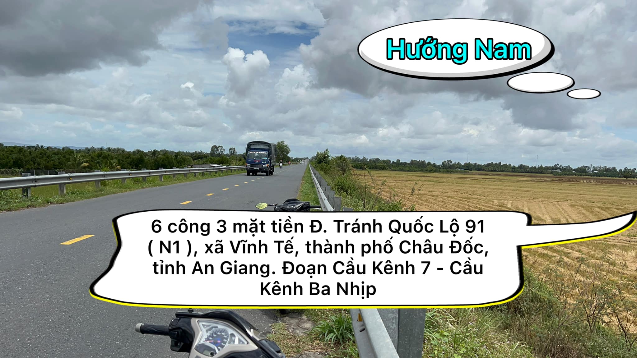 Cần bán 6 công 3 mặt tiền Đ. Tránh Quốc Lộ 91 ( N1 ), xã Vĩnh Tế, thành phố Châu Đốc, tỉnh An Giang. Đoạn Cầu Kênh 7 – Cầu Kênh Ba Nhịp