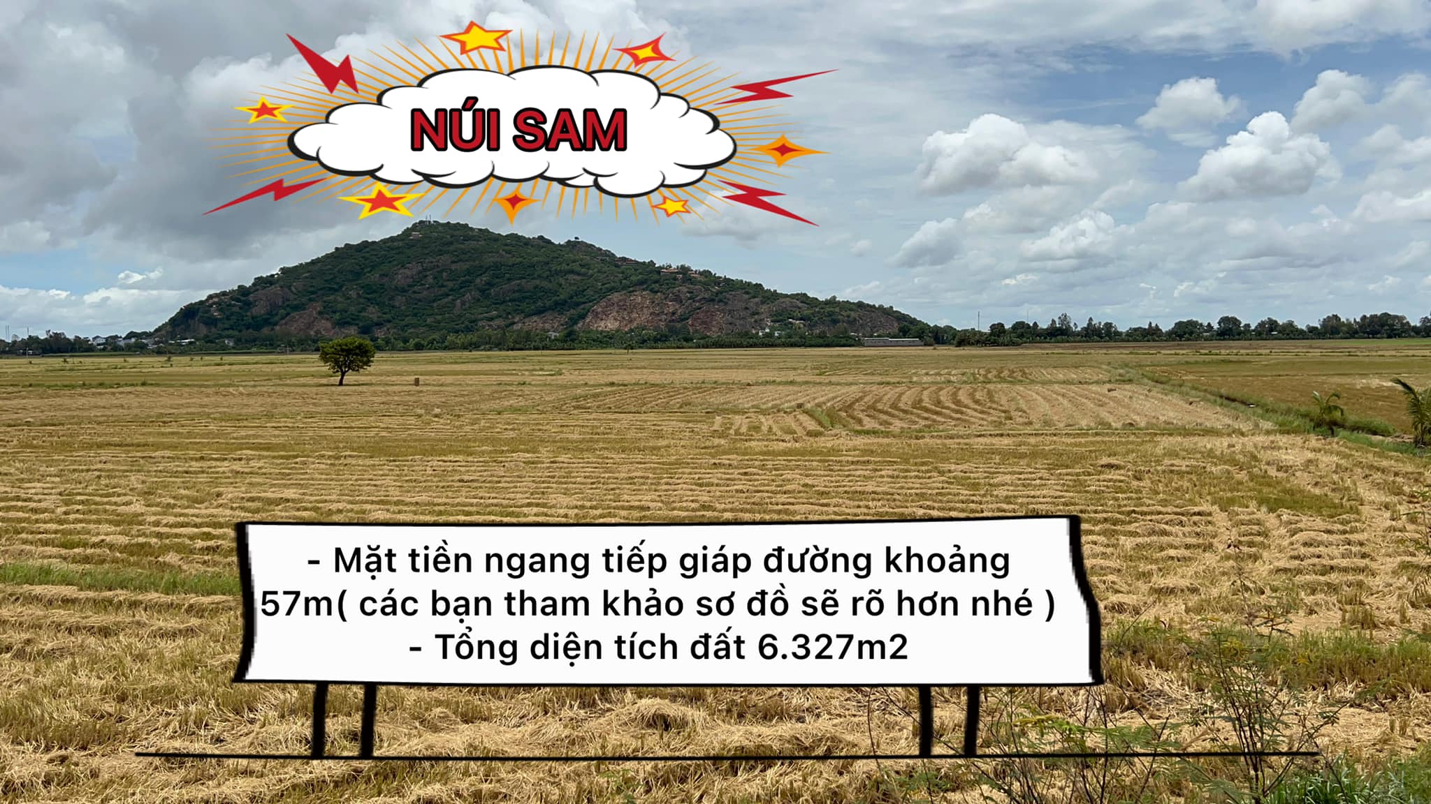 – Mặt tiền ngang tiếp giáp đường khoảng 57m( các bạn tham khảo sơ đồ sẽ rõ hơn nhé )