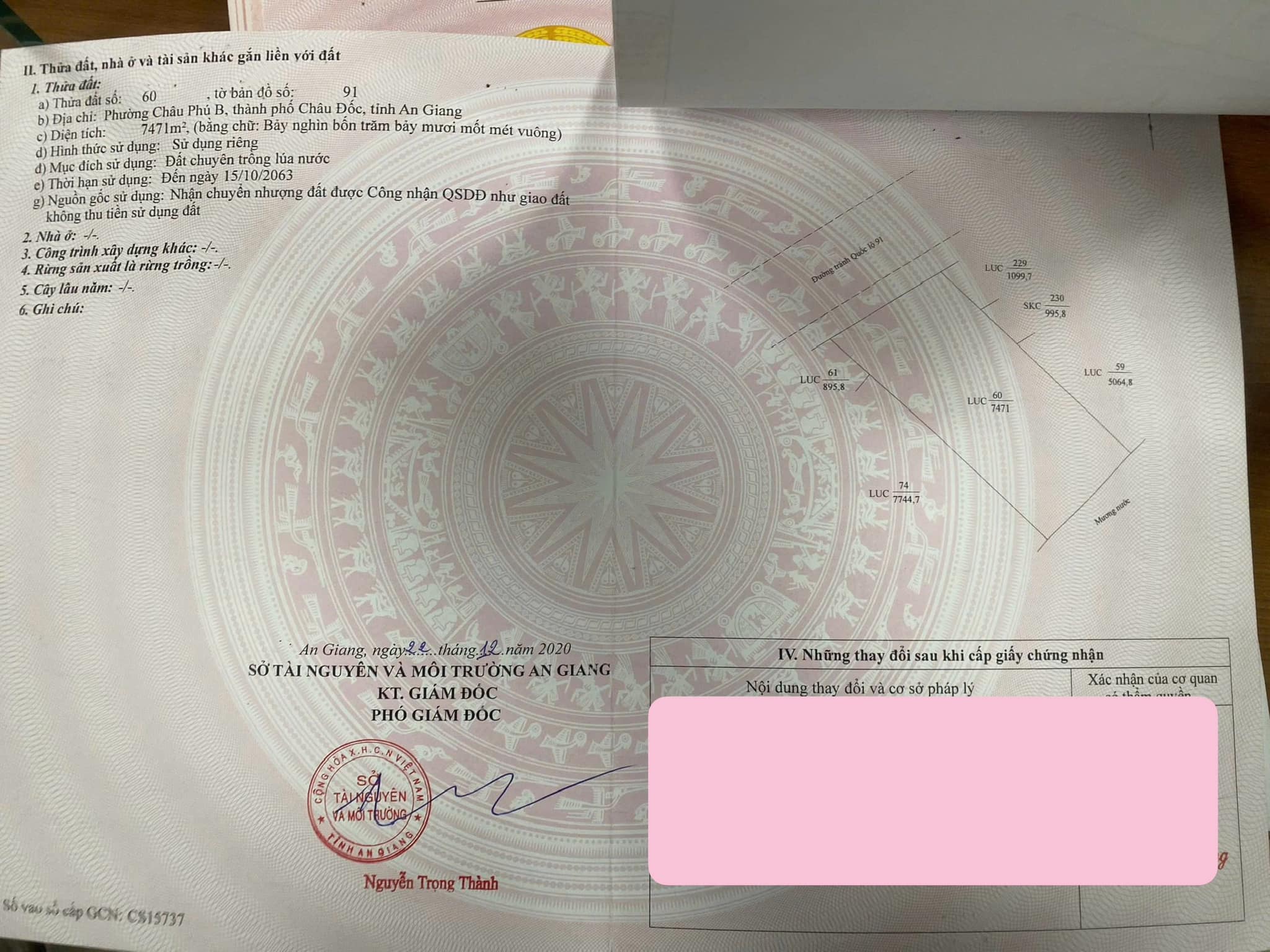Cần bán 7 công 5 mặt tiền Đ. Tránh Quốc Lộ 91 ( hay còn gọi là Đường N1 là Đường nối liền với Cầu Châu Đốc ) toạ lạc tại phường Châu Phú B, thành phố Châu Đốc, tỉnh An Giang