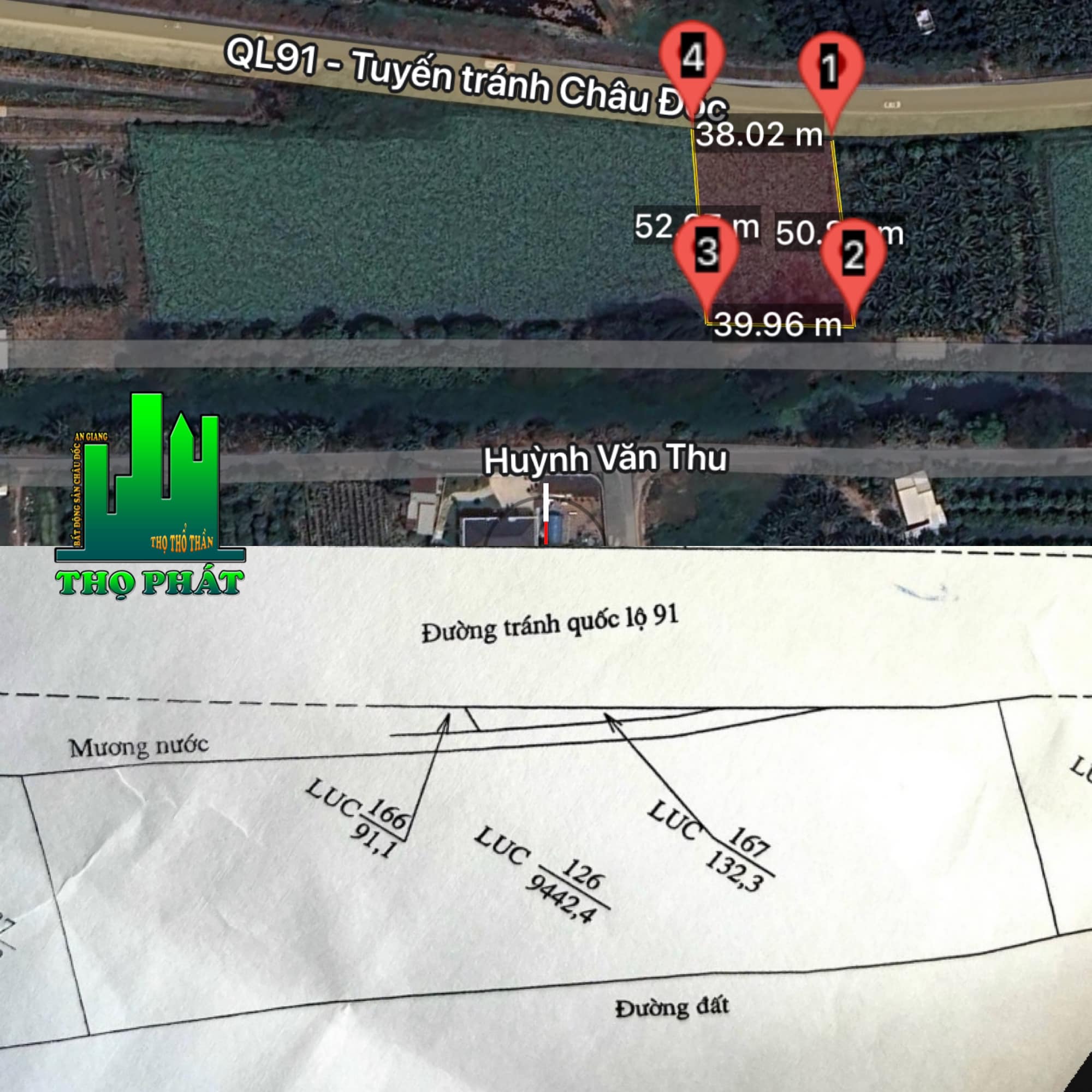 Cần bán lẻ 2 công đất có “2 mặt tiền” Đường N1 ( Đ. Tránh QL 91 ) & Kênh Huỳnh Văn Thu, phường Châu Phú B, thành phố Châu Đốc, tỉnh An Giang. Cách trường lái chỉ 500m
