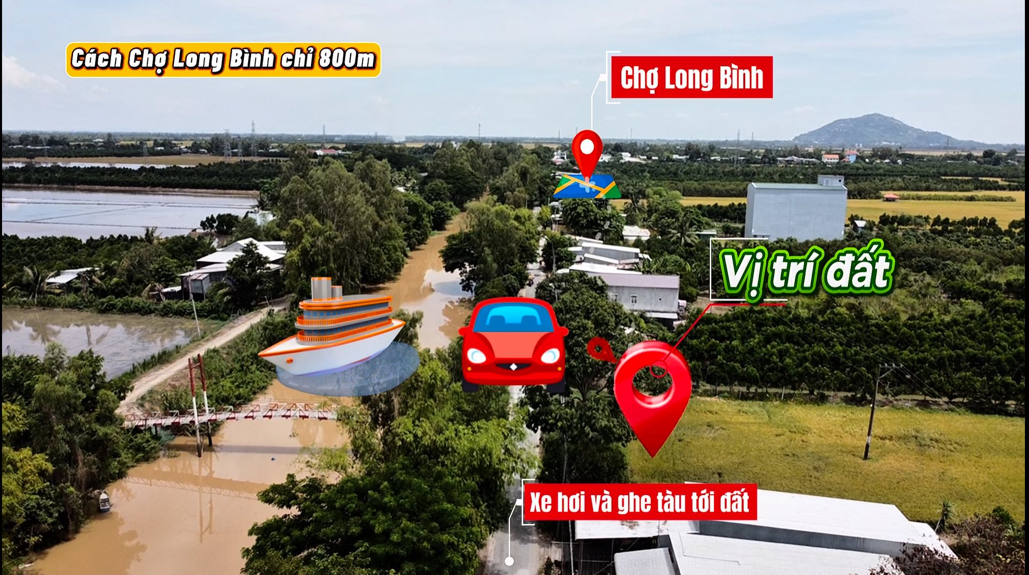 – Mặt tiền thuỷ bộ ô tô và ghe tàu tới đất