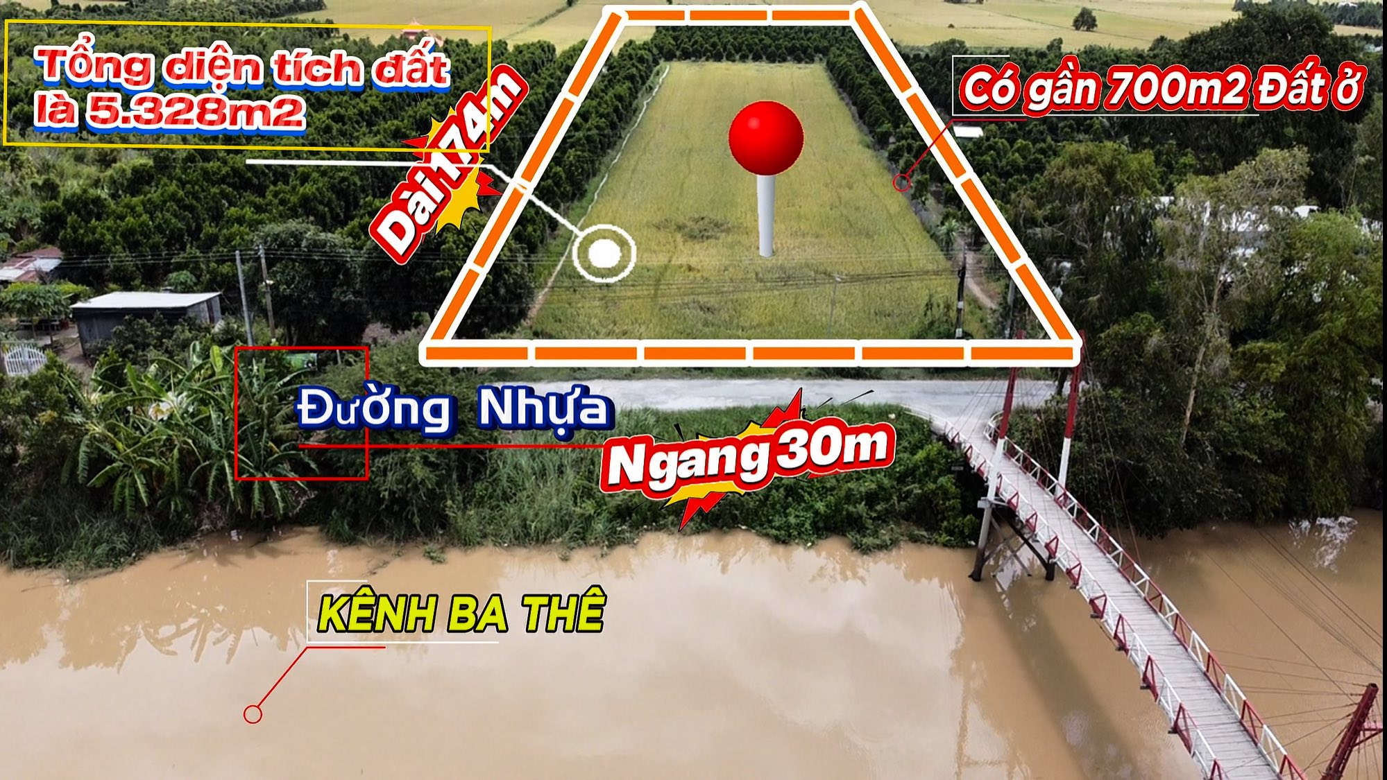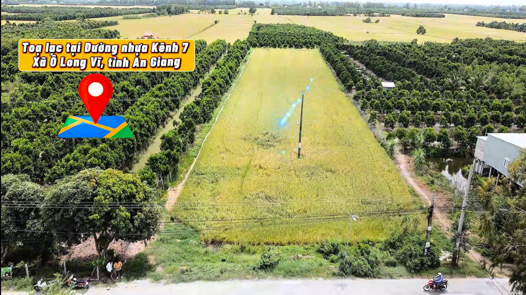 Cần bán mảnh đất siêu đẹp bao gồm nền 30×30 và 4 công 4 đất liền phía sau mặt tiền thuỷ bộ Đ. Nhựa Kênh 7, xã Ô Long Vĩ , tỉnh An Giang. Gần C.H.Ợ Long Bình.
