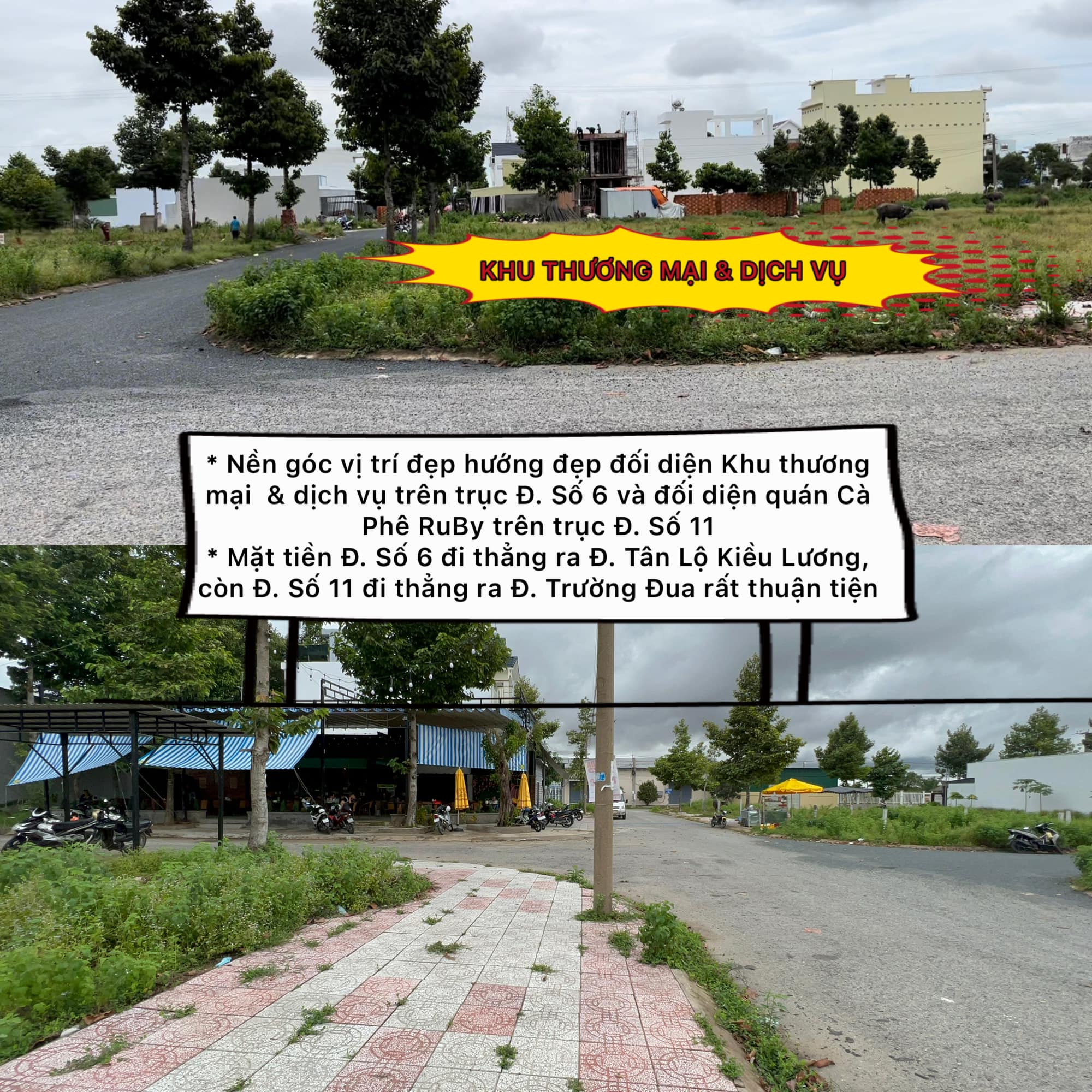 – Nền góc vị trí đẹp hướng đẹp đối diện Khu thương mại & dịch vụ trên trục Đ. Số 6 và đối diện quán Cà Phê RuBy trên trục Đ. Số 11