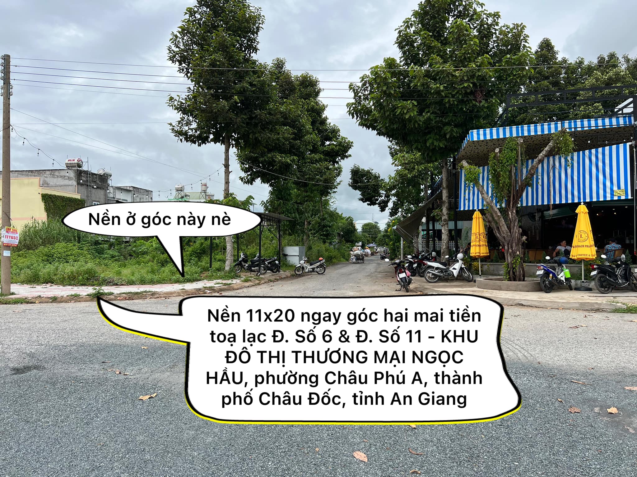 Cần bán nền 11×20 ngay góc hai mặt tiền toạ lạc Đ. Số 6 & Đ. Số 11 – KHU ĐÔ THỊ THƯƠNG MẠI NGỌC HẦU, phường Châu Phú A, thành phố Châu Đốc, tỉnh An Giang.