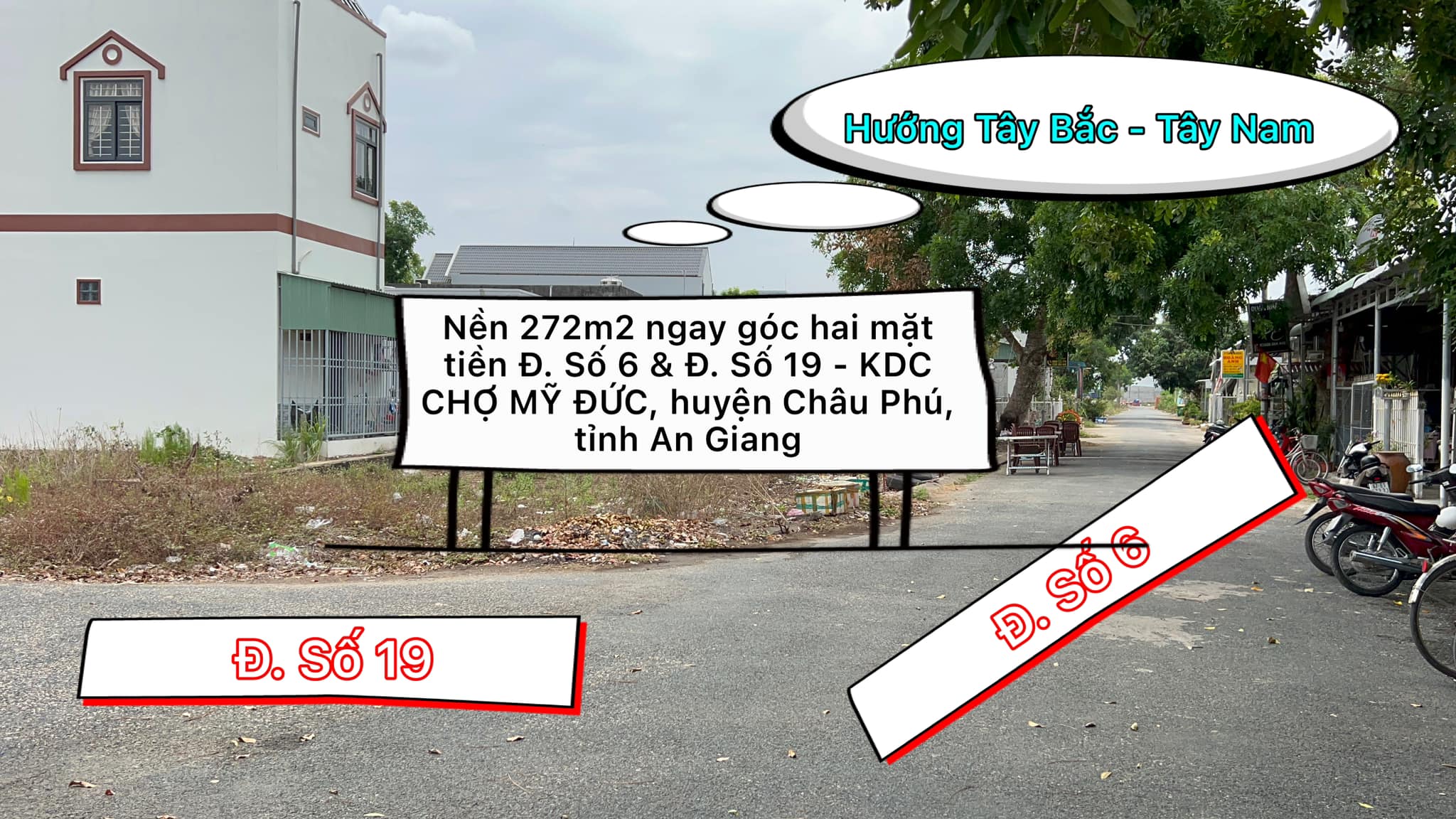 Cần bán nền 272m2 ngay góc hai mặt tiền Đ. Số 6 & Đ. Số 19 – KDC CHỢ MỸ ĐỨC, huyện Châu Phú, tỉnh An Giang. Đối diện công viên bên hông UBND XÃ MỸ ĐỨC