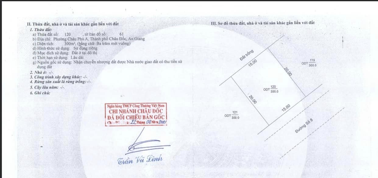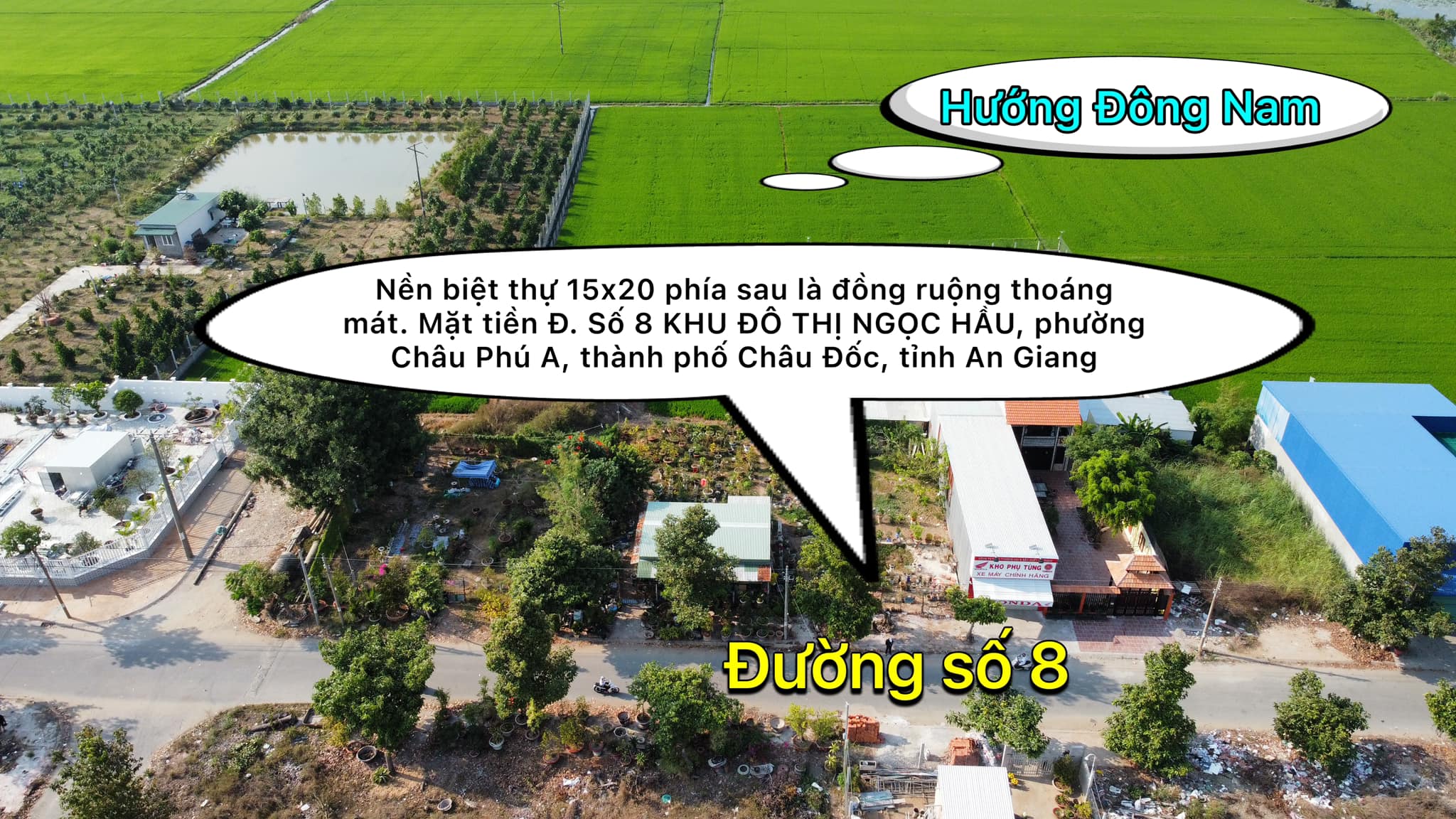 Cần bán nền biệt thự 15×20 phía sau là đồng ruộng thoáng mát. Mặt tiền Đ. Số 8 KHU ĐÔ THỊ NGỌC HẦU, phường Châu Phú A, thành phố Châu Đốc, tỉnh An Giang