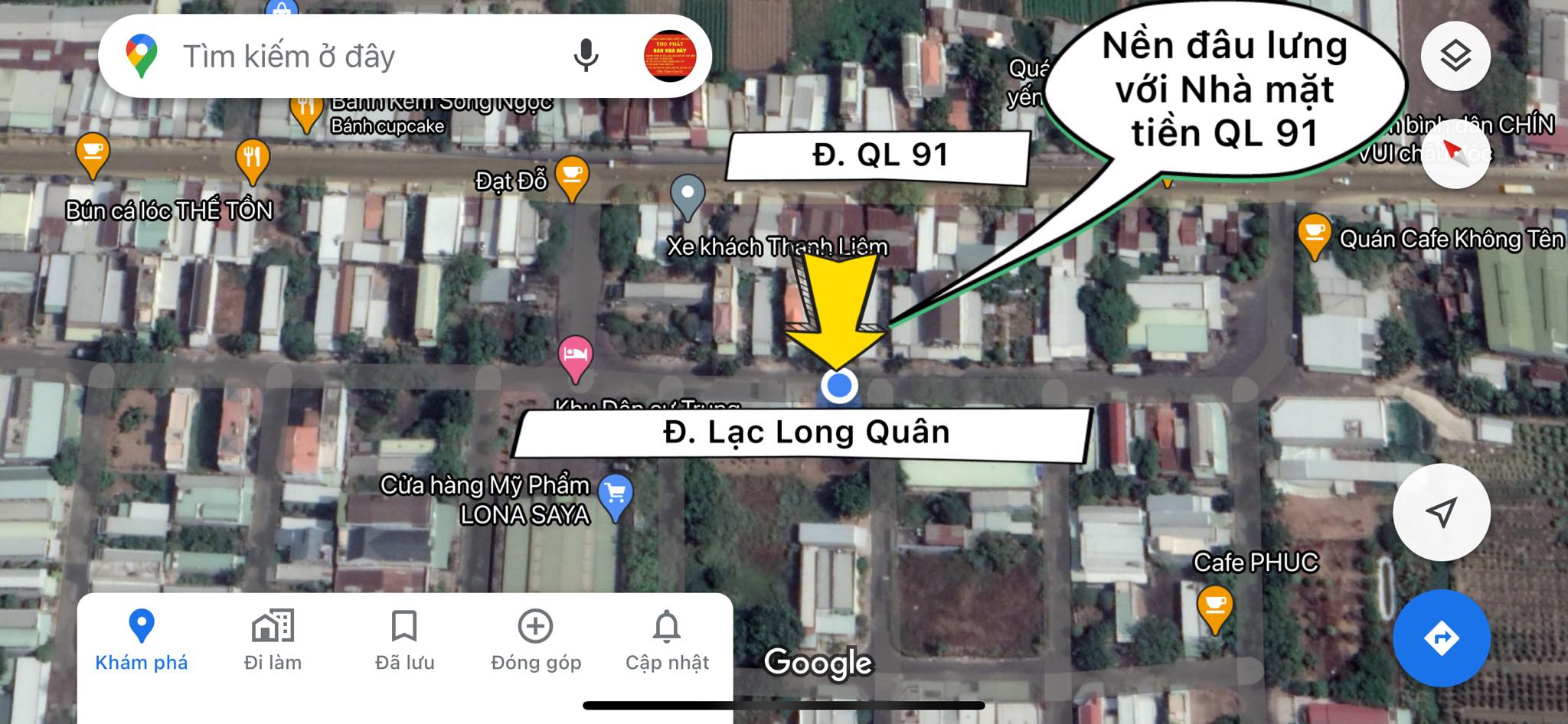 – Năm trên Đ. Lạc Long Quân đâu lưng với dãy nhà mặt tiền Quốc Lộ 91. Là 1 trong những con đường chính chủa TTTM.