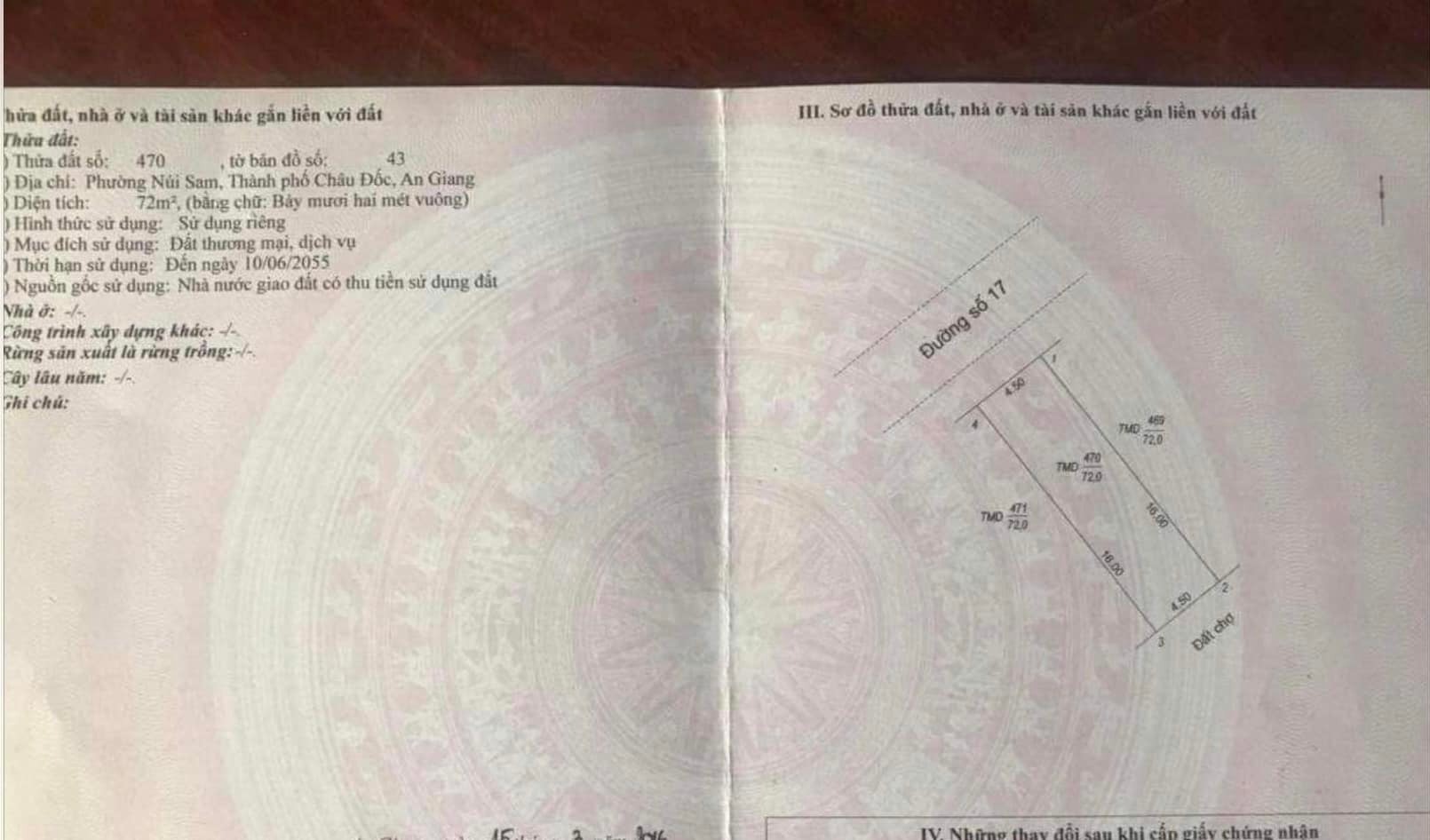 Cần bán nền đôi 9×16 ngay KHU DU LỊCH QUỐC GIA MIẾU BÀ CHÚA XỨ NÚI SAM. Toạ lạc Đ. Số 17 – KDC C.H.Ợ VĨNH ĐÔNG, phường Núi Sam, thành phố Châu Đốc, tỉnh An Giang