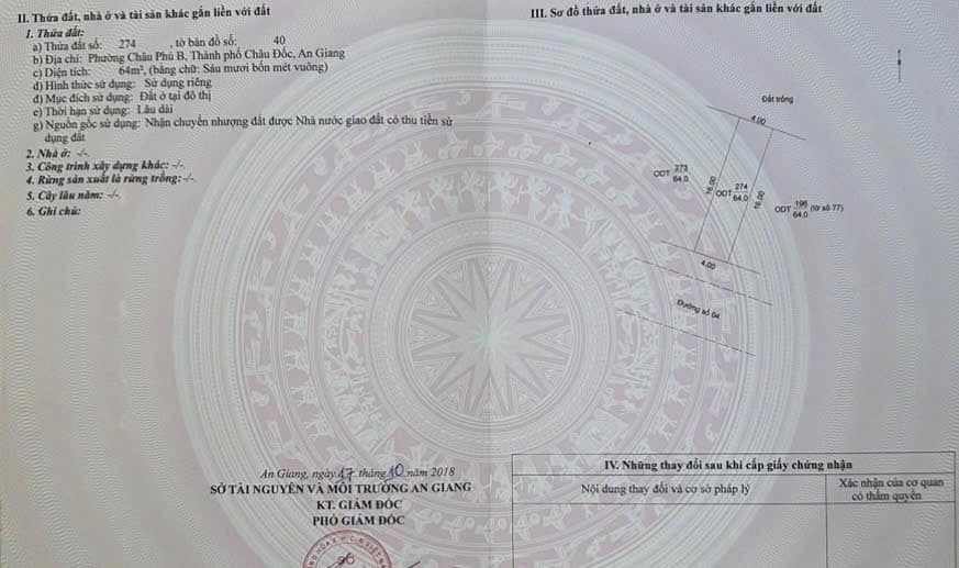 – Diện tích đất ngang 4m x dài 16m = 64m2 Đất ở đô thị.