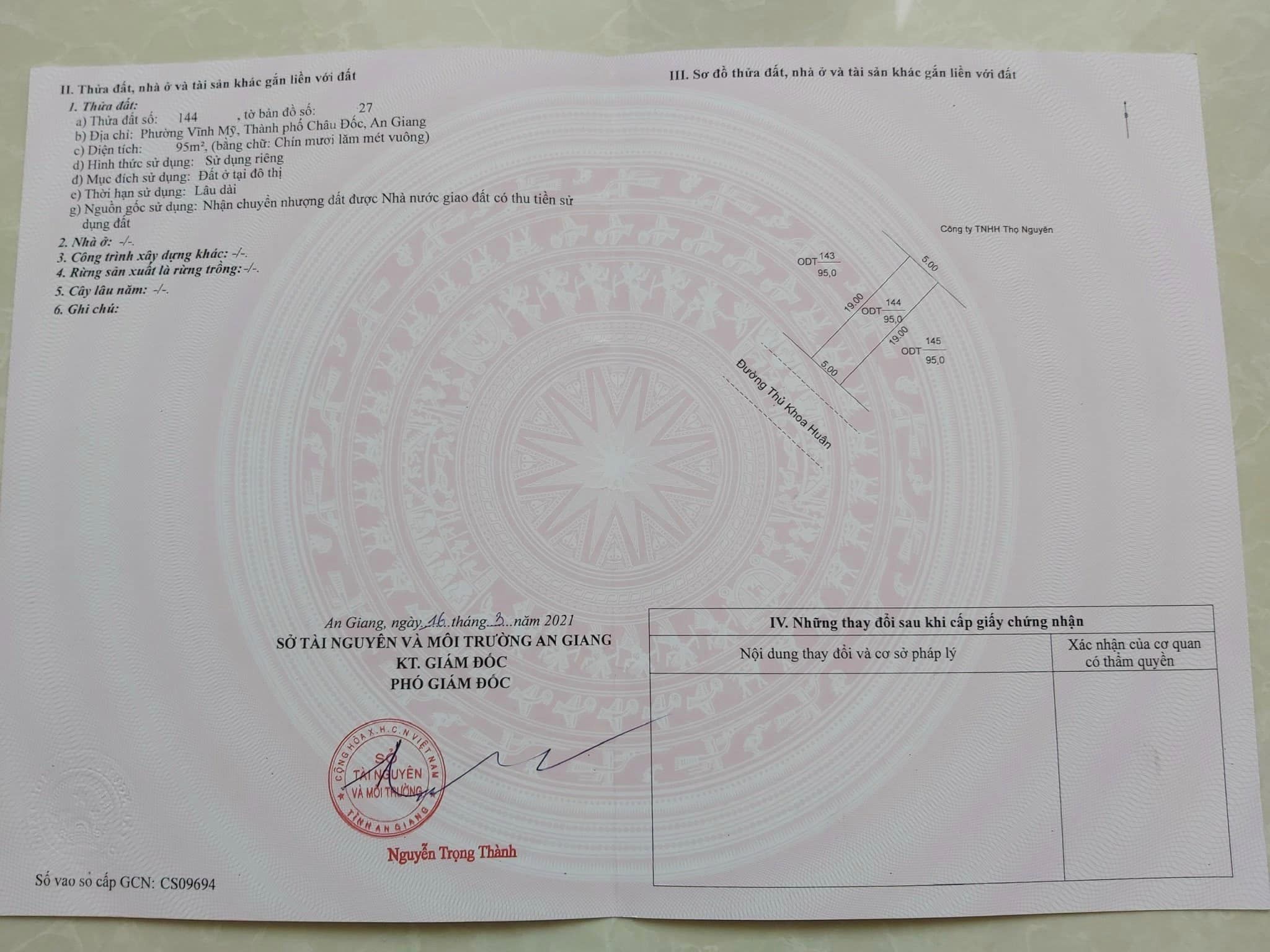 – Diện tích đất Ngang 5m x dài 19m = 95m2