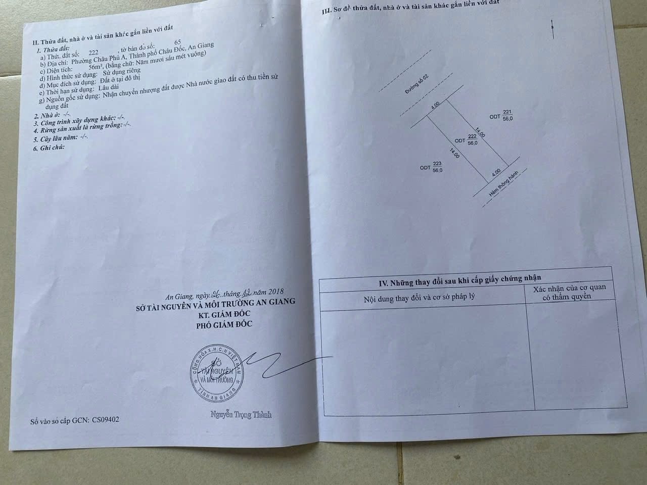 – Diện tích đất ngang 4m x dài 14m ( có sẵn hẻm thông hành ) = 56m2 Đất ở đô thị.