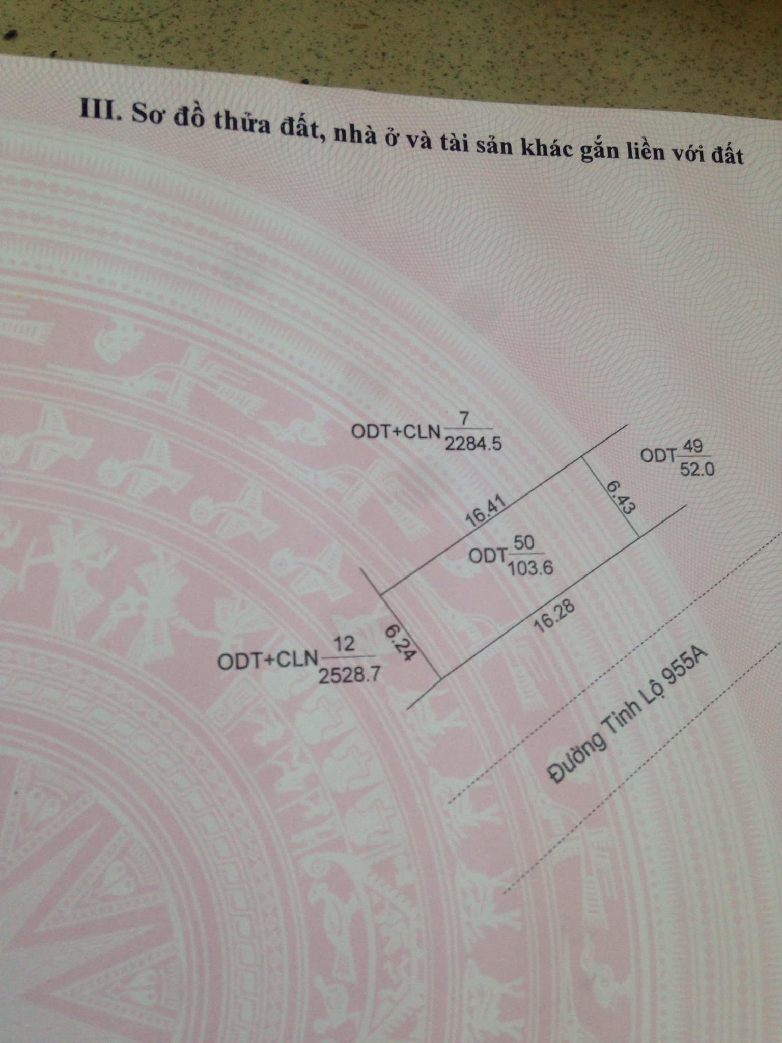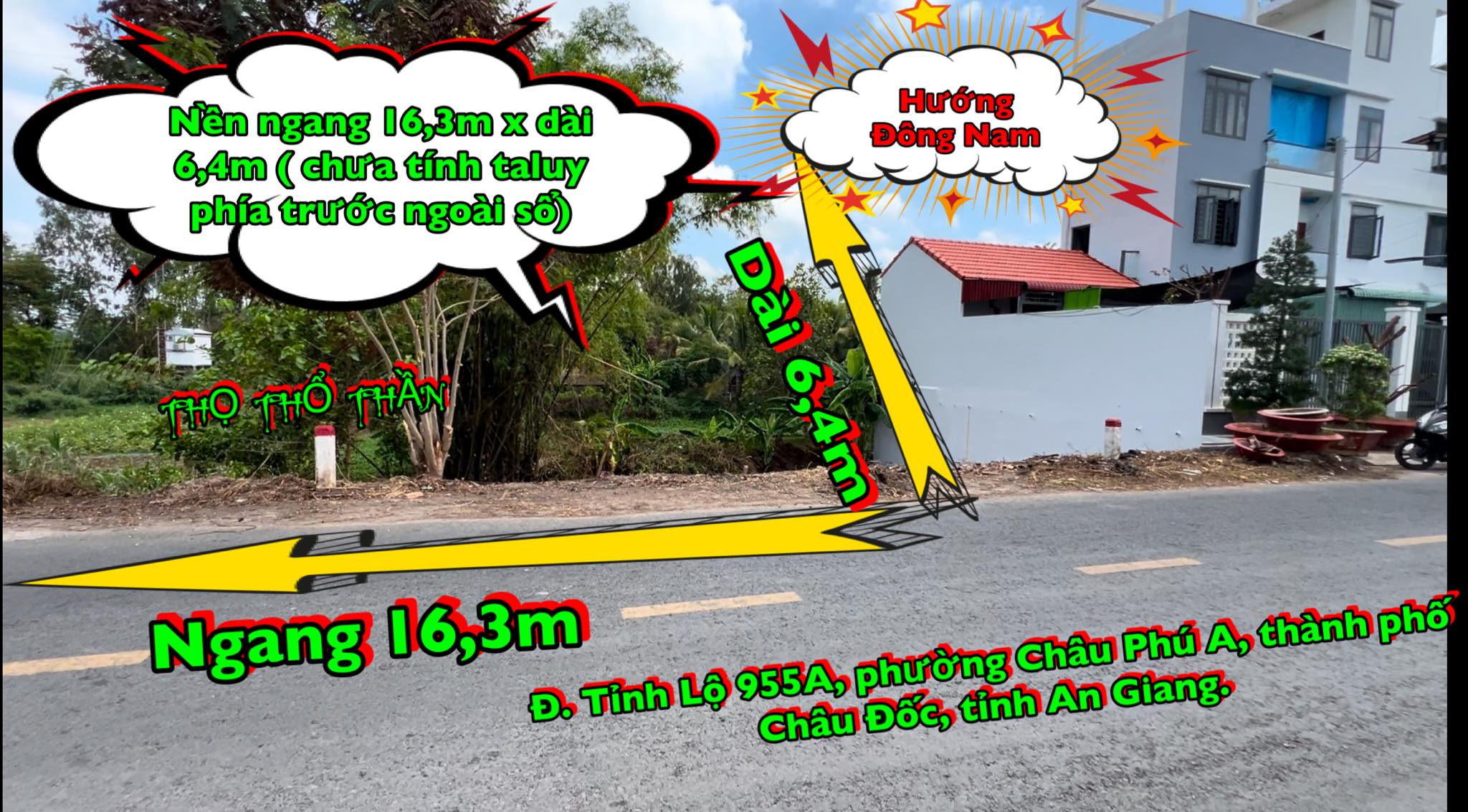Cần bán nền ngang 16,3m x dài 6,4m ( chưa tính taluy phía trước ngoài sổ) mặt tiền Đ. Tỉnh Lộ 955A, phường Châu Phú A, thành phố Châu Đốc, tỉnh An Giang.