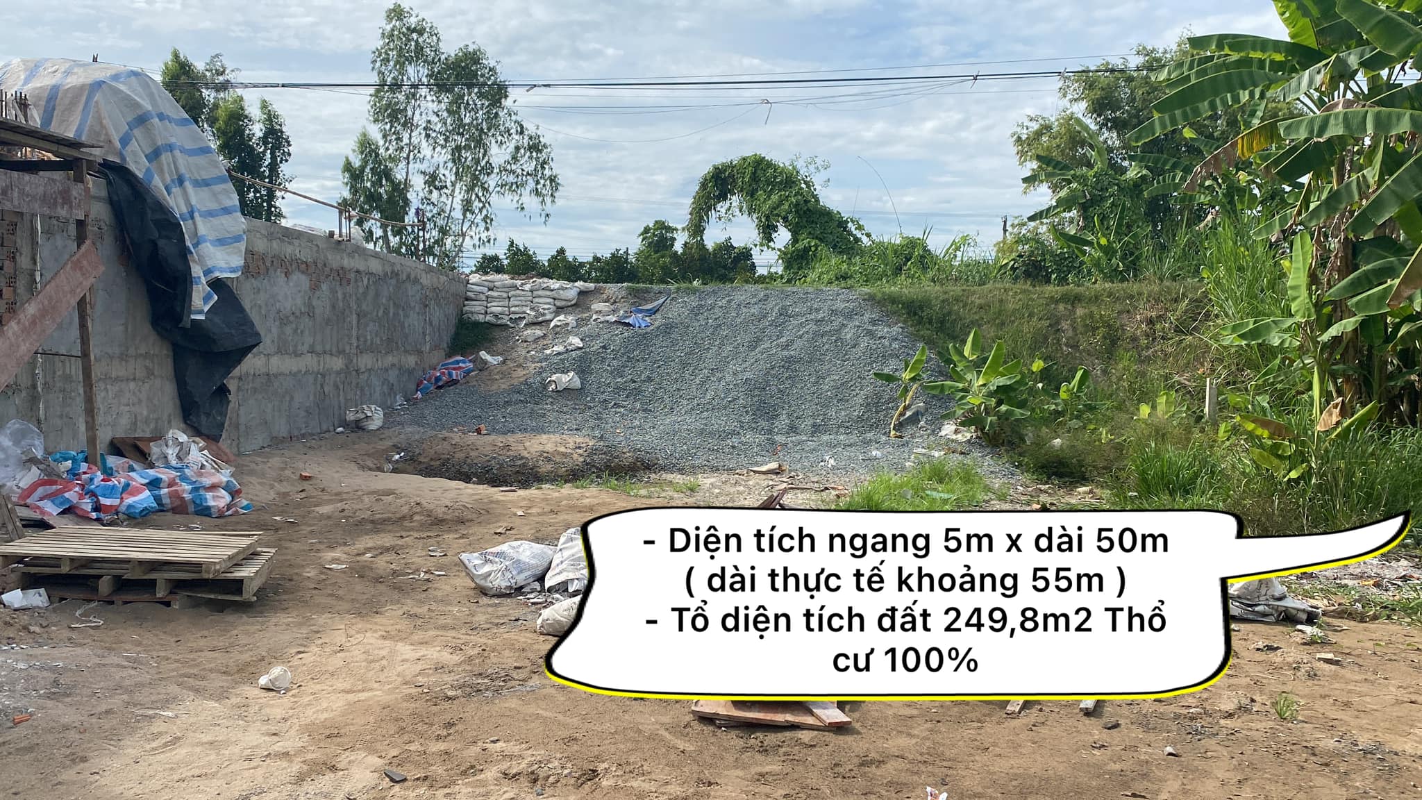 – Diện tích ngang 5m x dài 50m ( dài thực tế khoảng 55m )