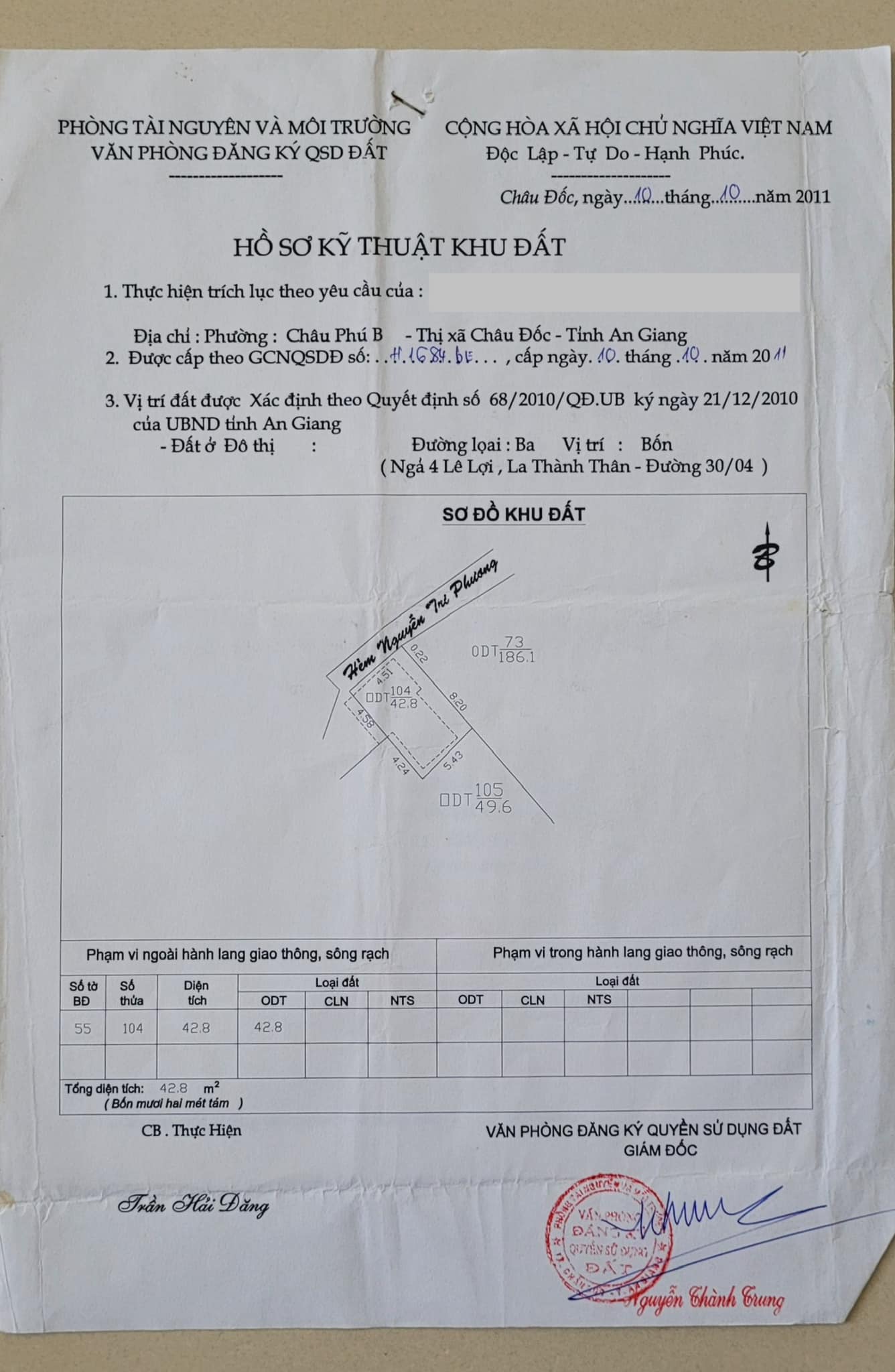 Cần bán nền thổ cư giá mềm hẻm 266 Nguyễn Tri Phương, phường Châu Phú B, thành phố Châu Đốc, tỉnh An Giang