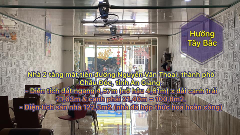 Cần bán nhà 2 tầng mặt tiền đường Nguyễn Văn Thoại, thành phố Châu Đốc, tỉnh An Giang.