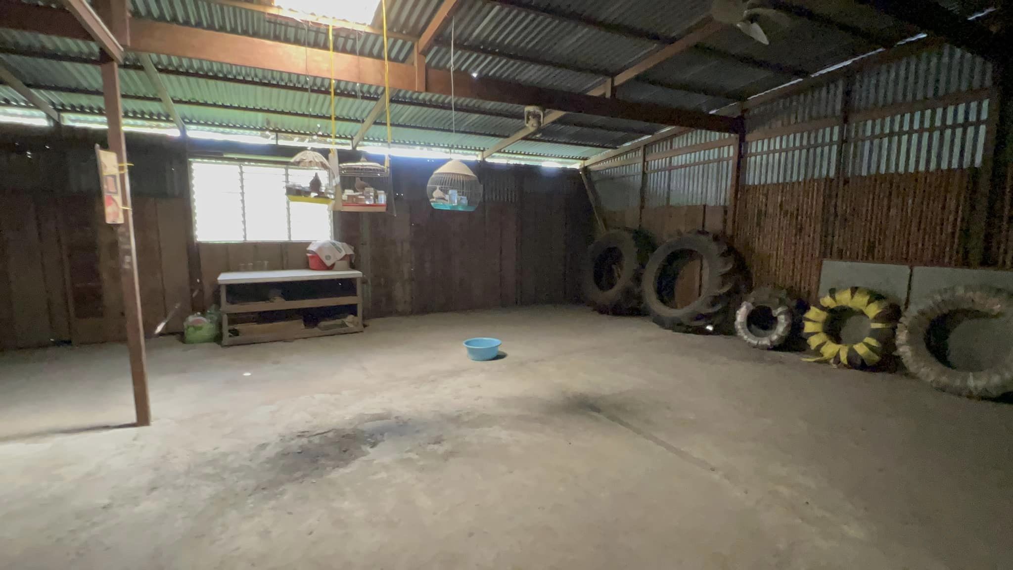 – Nhà kho kế bên ngang 4m ( nở hậu 9,65m ) x dài 28m. Sàn bê tông vách cây + tole