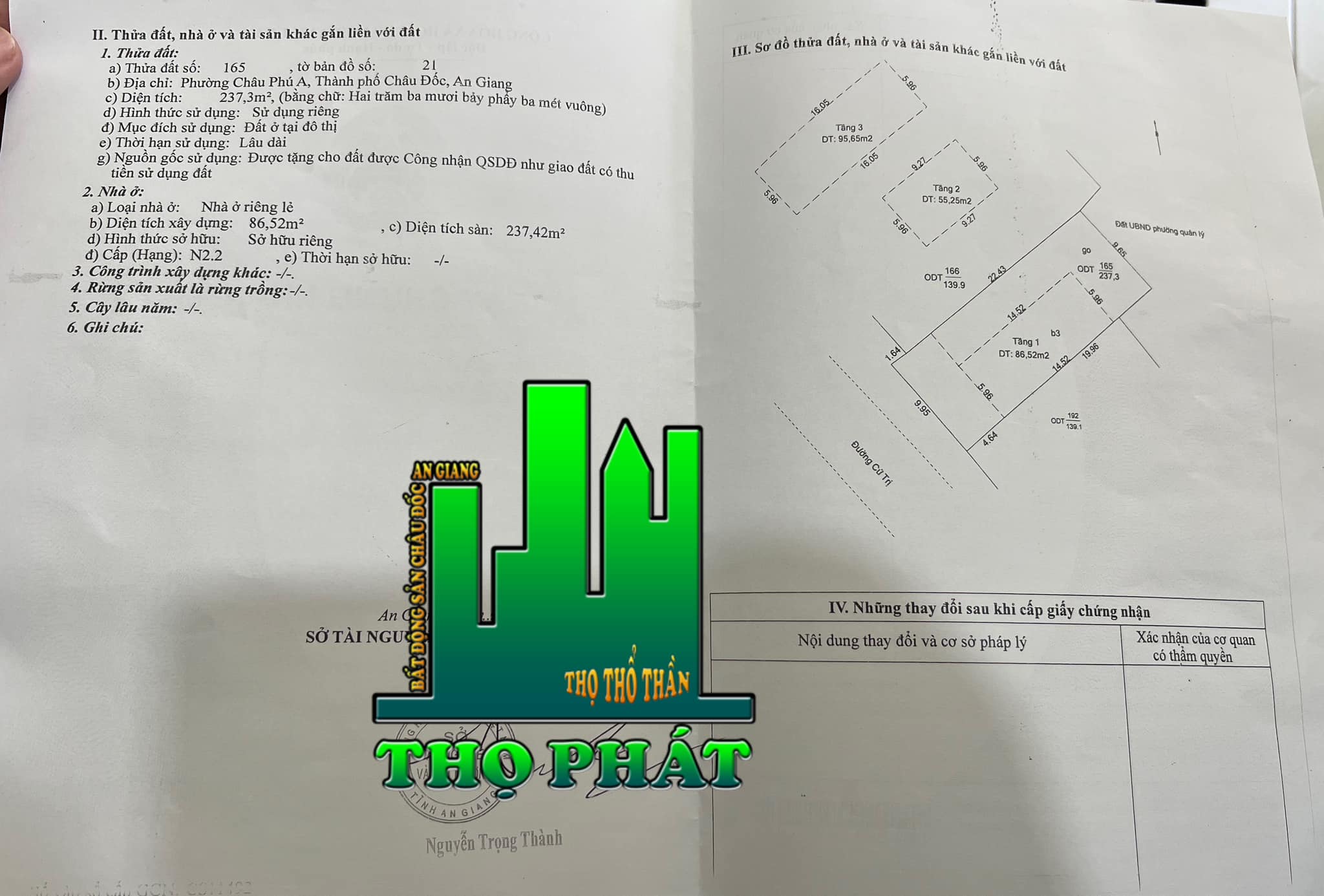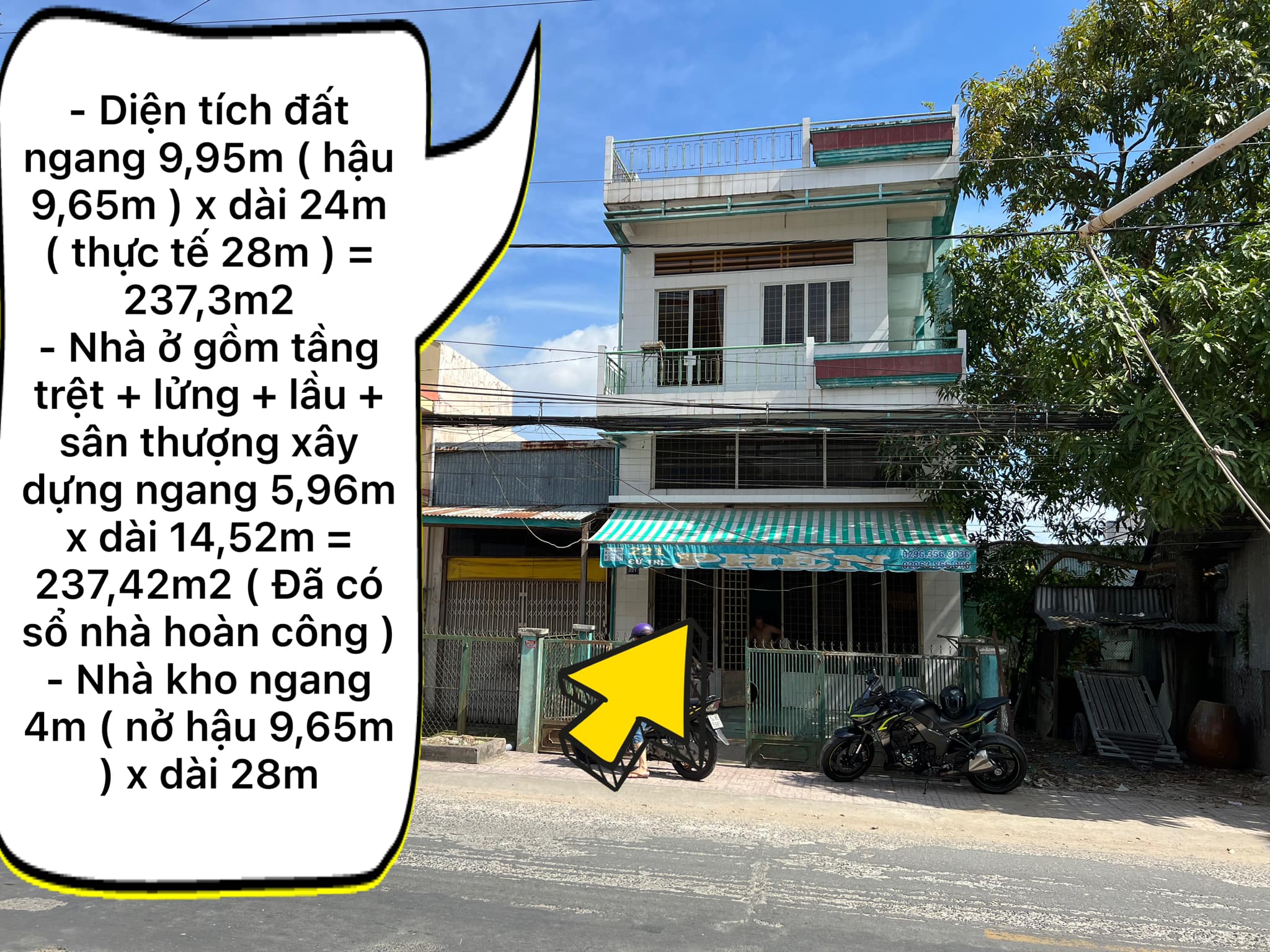 – Nhà ở gồm tầng trệt + lửng + lầu + sân thượng xây dựng ngang 5,96m x dài 14,52m = 237,42m2 ( Đã có sổ nhà hoàn công )