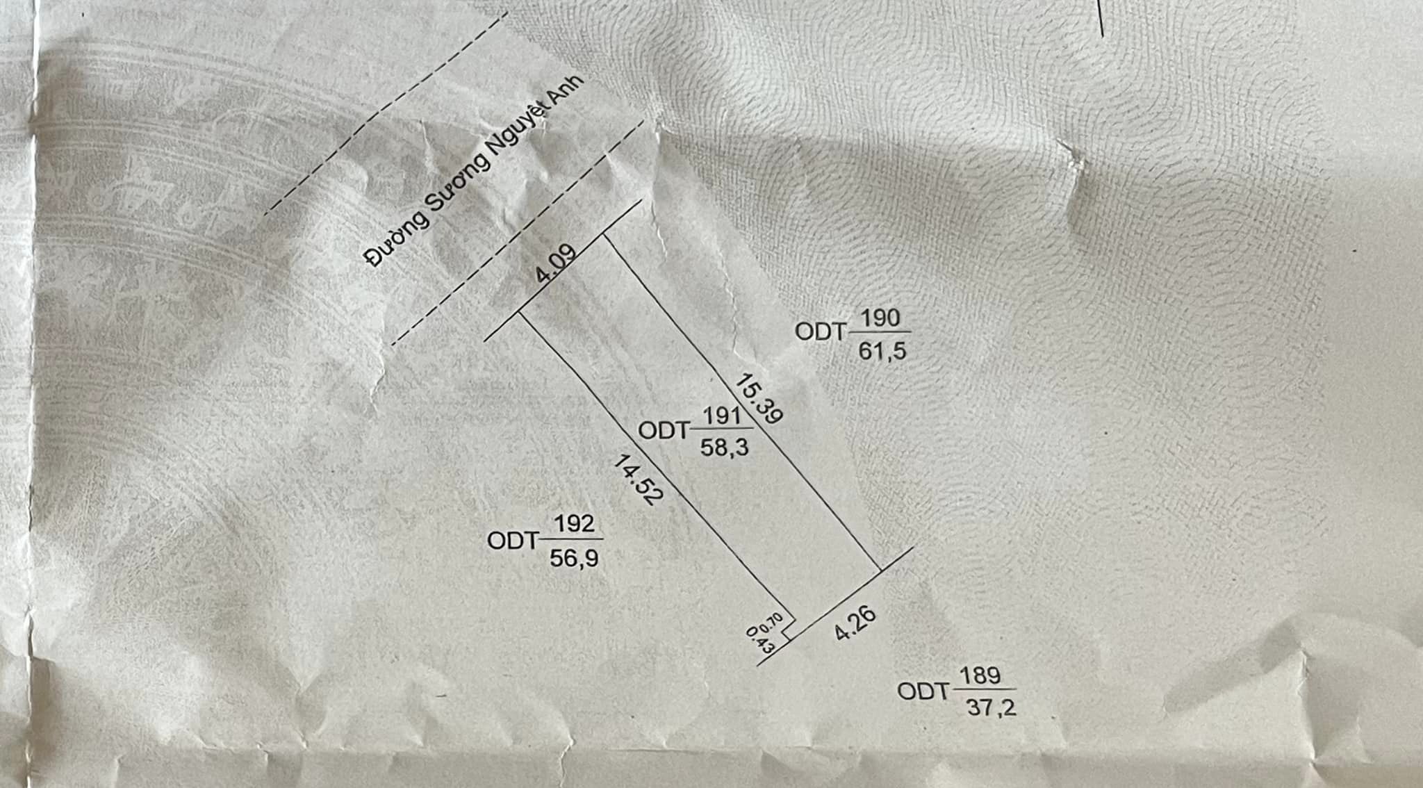 – Diện tích đất ngang 4,09m ( nở hậu 4,26m ) x dài 15,39m = 58,3m2