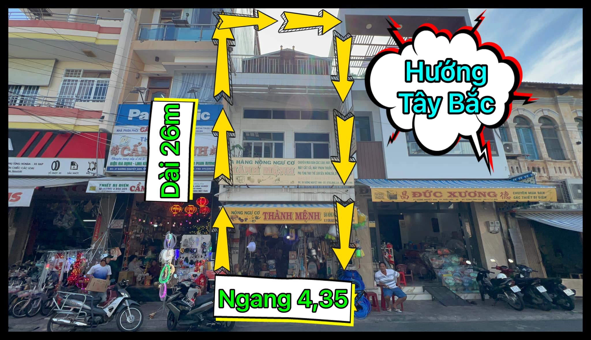 – Diện tích đất ngang 4,35m ( nở hậu 4,56m ) x dài 26m = 115,7m2. Đất ở đô thị