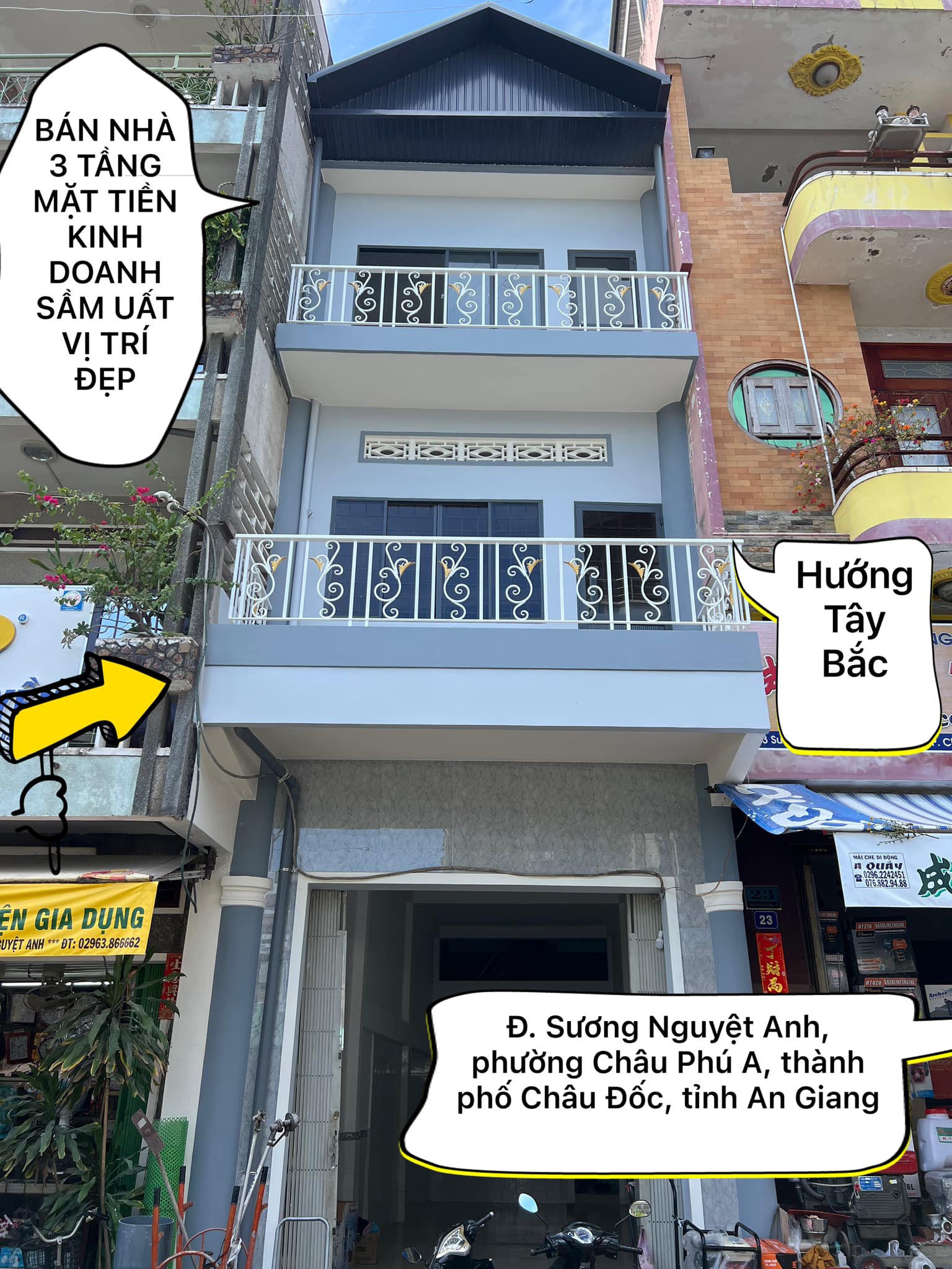 Cần bán nhà 3 tầng mặt tiền kinh doanh sầm uất vị trí đẹp trên Đ. Sương Nguyệt Anh, phường Châu Phú A, thành phố Châu Đốc, tỉnh An Giang