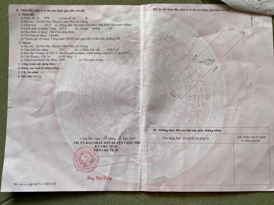 – Diện tích sàn nhà 638,6m2. Nhà đã hợp thức hoà hoàn công sổ nhà.
